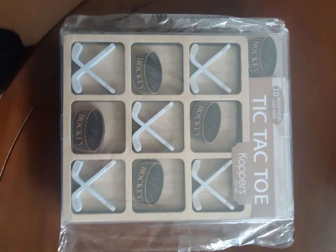 Selling a brand new Koppers Tic Tac Toe game! This set includes 10 wooden pieces and a game board, perfect for some fun and friendly competition. The pieces are designed with hockey sticks and pucks, adding a Canadian twist to the classic game