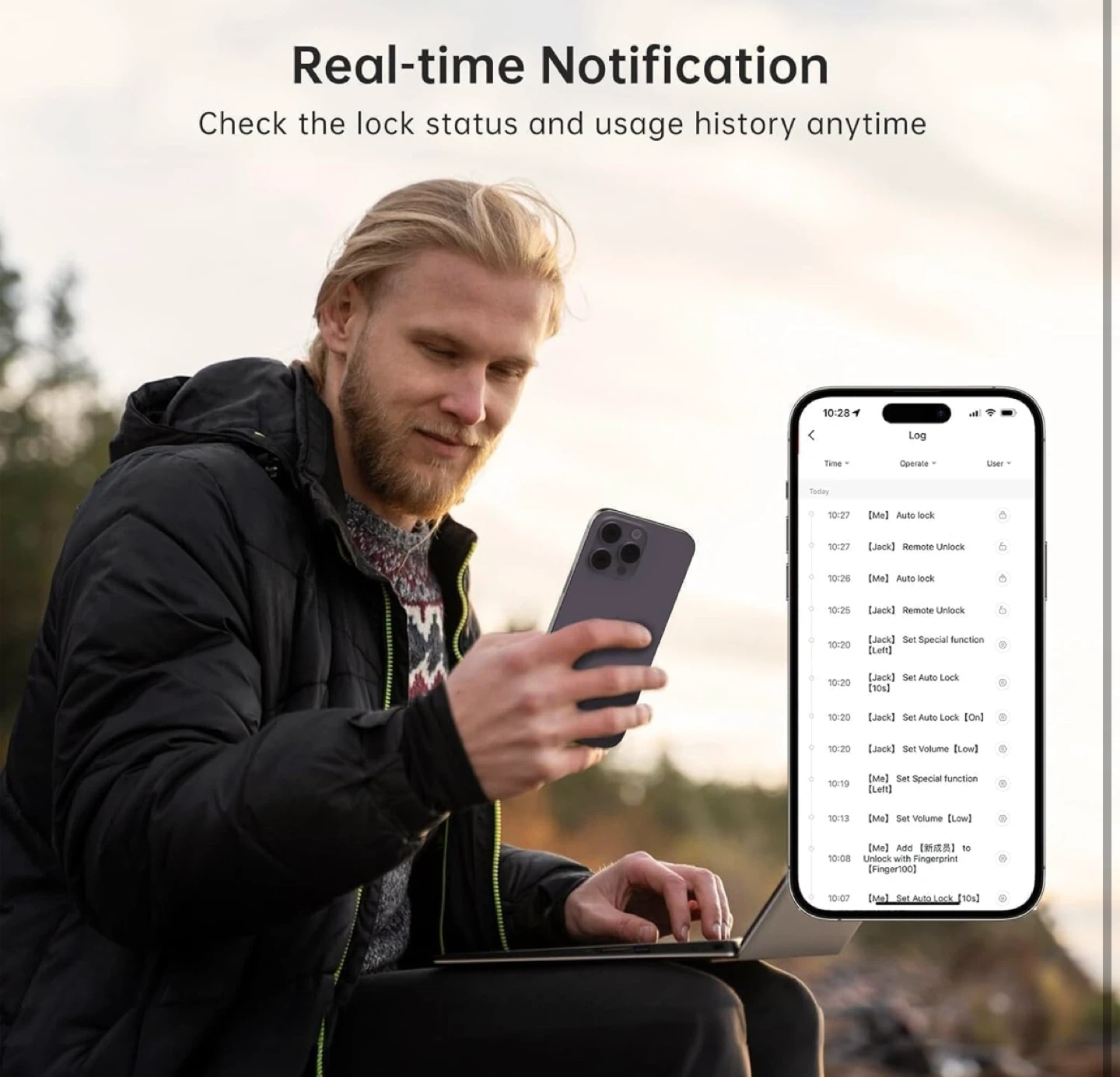 Hornbill Smart Front Door Lock Keyless Entry Fingerprint Deadbolt - Alexa Bluetooth Electronic Keypad Door Locks for House Apartment Auto Lock Smart Life APP Remote Control Black (Without Gateway)