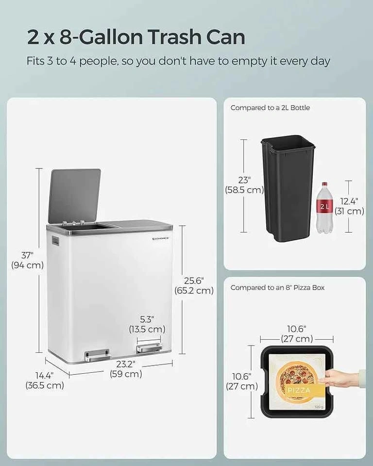 SONGMICS Trash Can, 2 x 8 Gallon Garbage Can