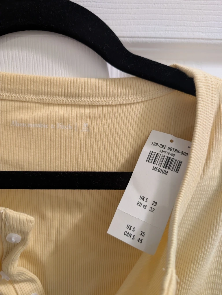 Here's a cute yellow tank from Abercrombie & Fitch! It's a size medium and brand new, originally bought for $45 CAD
