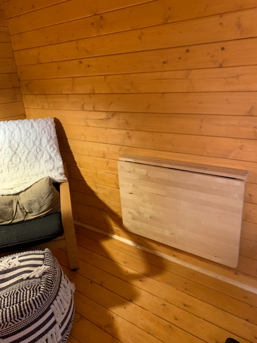 Selling a wall-mounted drop-leaf table! It's perfect for small spaces and can be folded down when not in use. Great for creating a temporary workspace or dining area