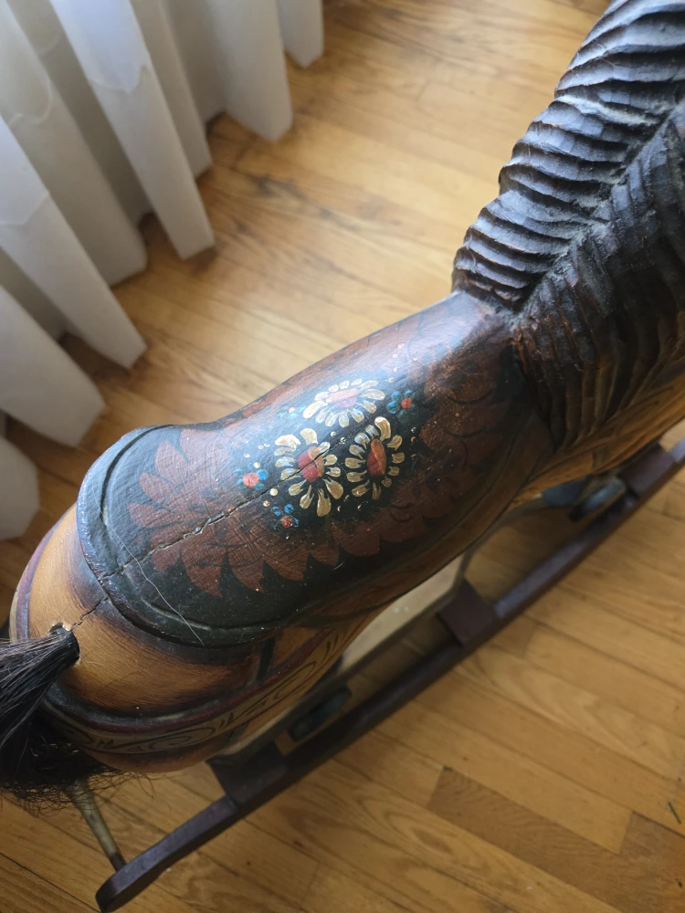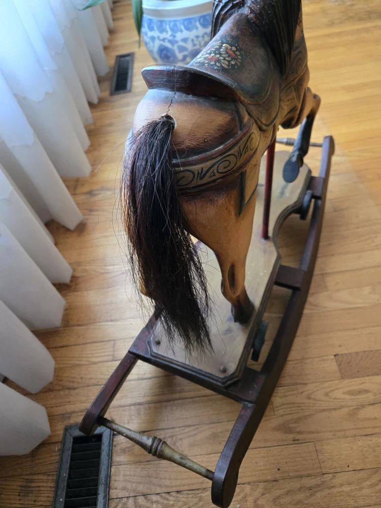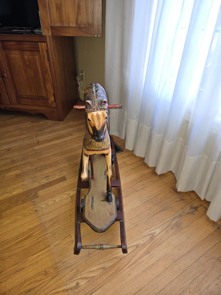 1 / 41 / 4Buy & SellVintage Wooden Rocking HorseVintage Wooden Rocking Horse$250Vintage rocking horse with real horse hair. Unsure of age, bought at estate sale 35 years ago.WHERE TO MEETCheck LocationView MapSELLERverifiedKatieEtobicoke W Mall1409 reviews0 chats·2 favorites·50 viewsSEND CHAT TO SELLERHi Katie! I’m interested in your listing.Hi Katie! I’m interested in your listing.Get the Karrot app to chatSign In to chat