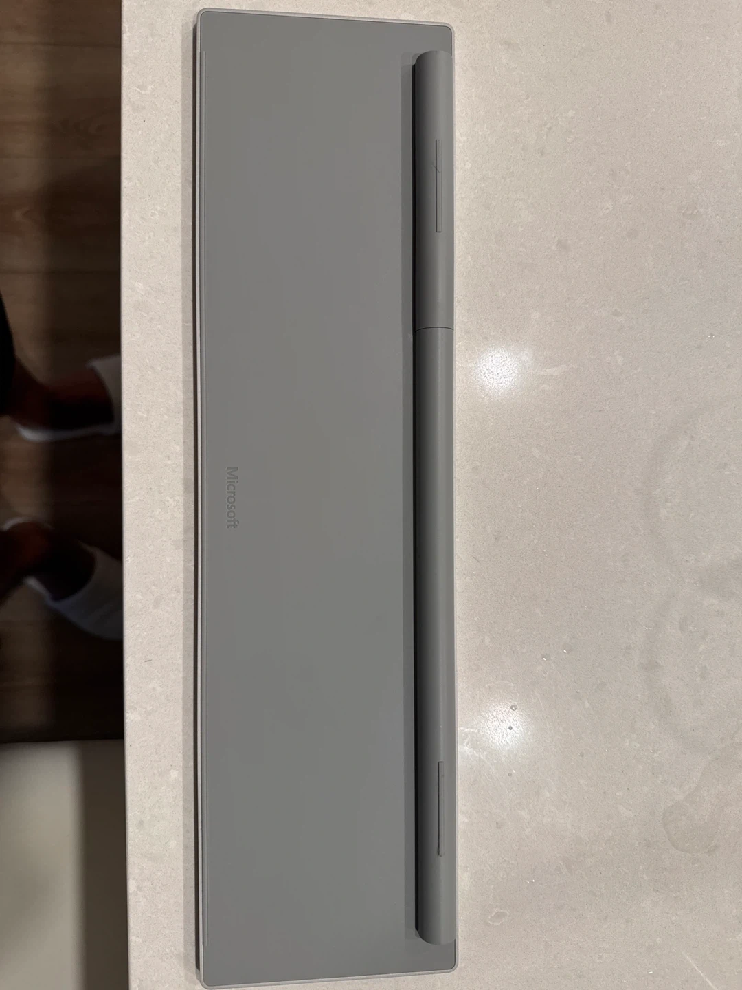 Selling a Dell wireless bluetooth Keyboard in grey. It's in great condition and ready for a new setup! Perfect for anyone looking for a sleek and functional keyboard for their computer