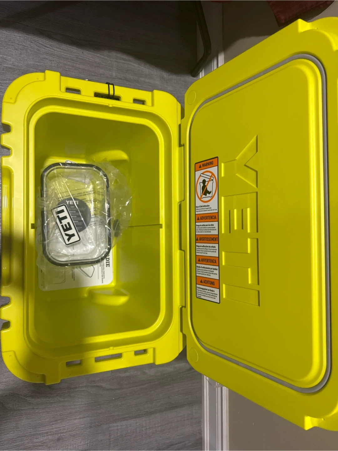 Selling a YETI Roadie 32 Wheeled Cooler in the vibrant Chartreuse colour! It's in great condition and ready for your next adventure. This cooler is perfect for keeping your drinks and snacks cold on the go. It is durable and has wheels for easy transport. This is a must-have for camping, picnics, and road trips!