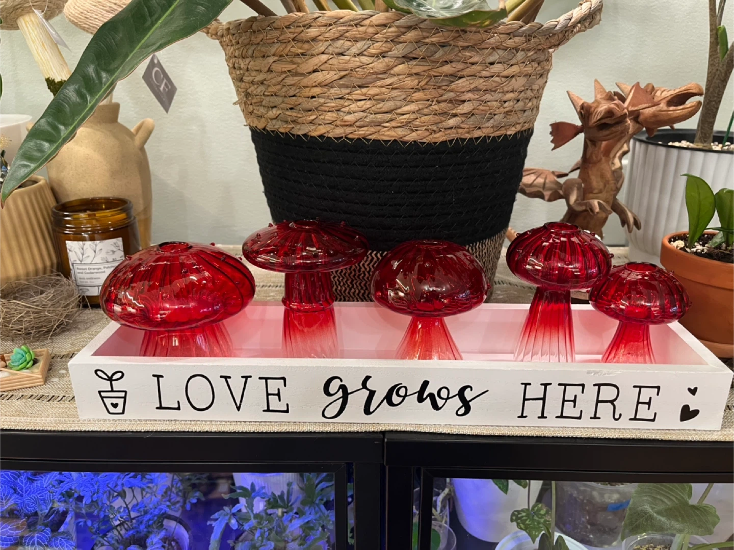 Add a touch of whimsy to your space with these adorable sets of five mushroom-shaped glass propagation jars.These charming pieces come in various colours. Perfect for adding a pop of colour and fun to any room