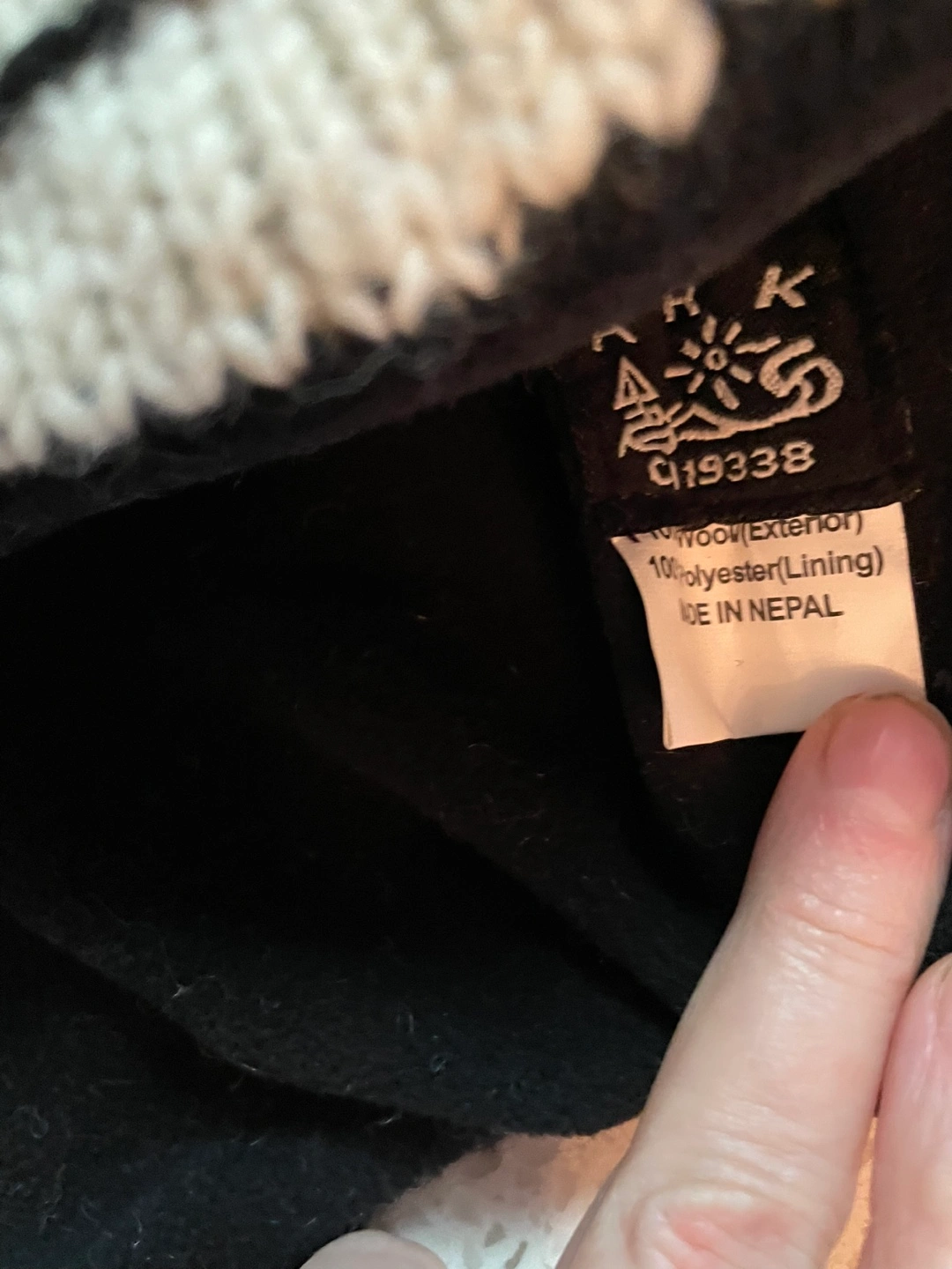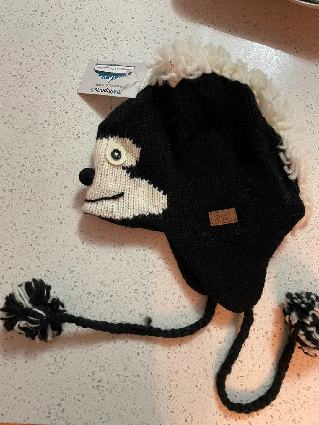 Brand new Arki Imports wool hat, still with tags attached! This unique hat is made with 100% New Zealand wool and has a fun, quirky design. The lining is 100% polyester fleece for extra comfort. Made in Nepal