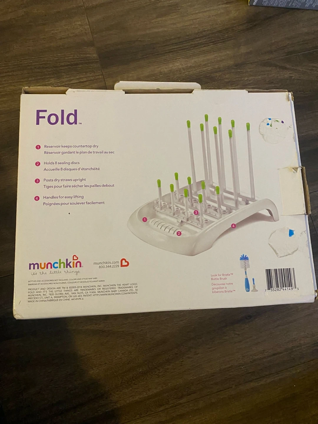 Selling a Munchkin Fold bottle drying rack in great condition! It's white and designed to keep your countertop dry with its reservoir. It also holds 8 sealing discs and has posts to dry straws upright. Plus, it has handles for easy lifting! Perfect for keeping baby bottles organized and clean