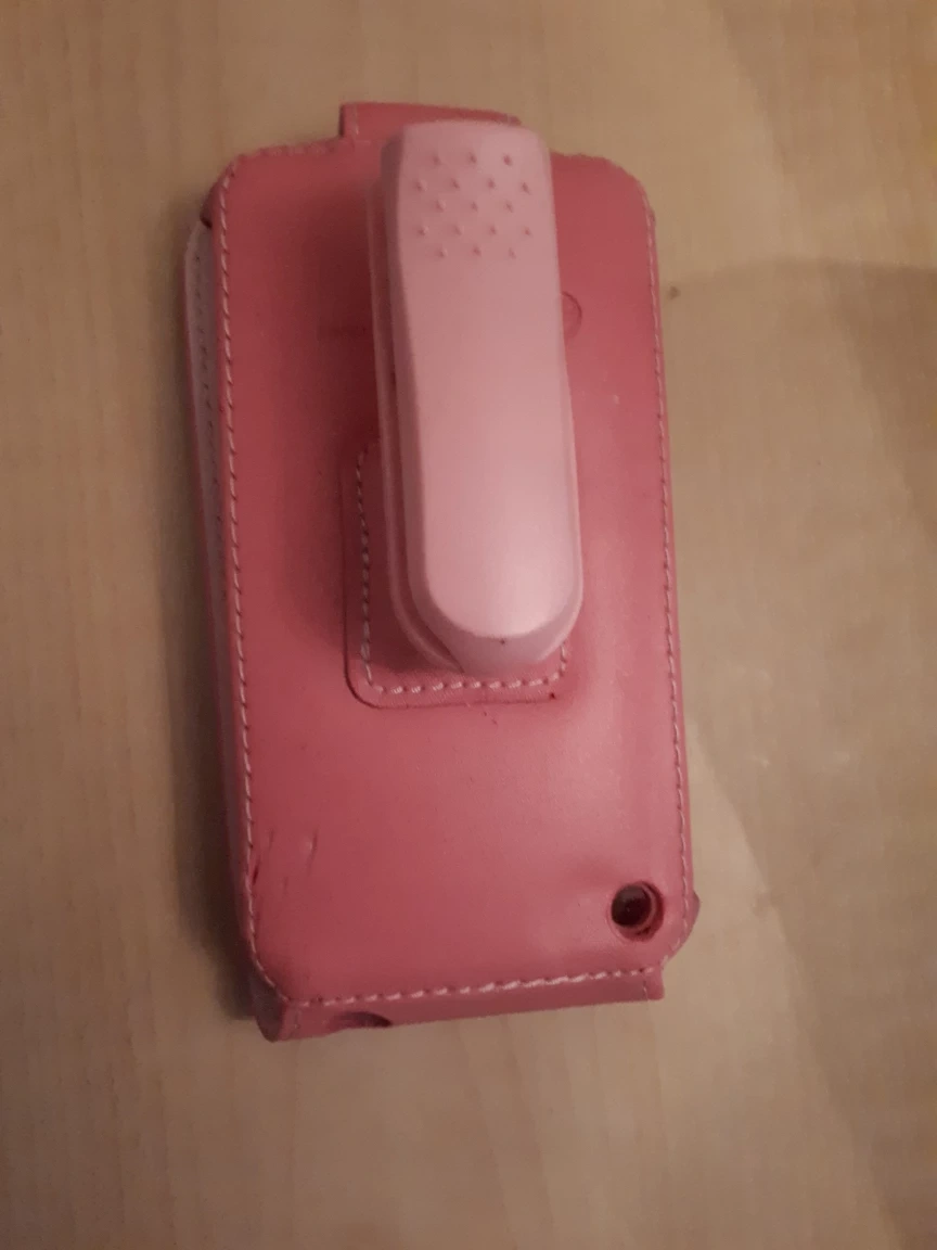Selling a pink leather phone case. It shows some signs of wear, as seen in the pictures. Still a cute case!