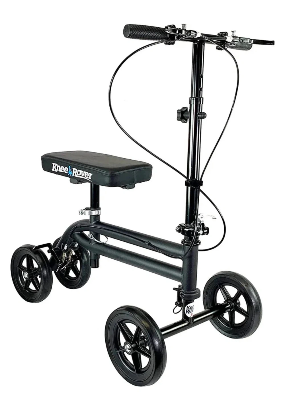 The KneeRover knee walker is a fantastic mobility solution for individuals recovering from foot, ankle, or knee injuries, offering a comfortable and stable alternative to crutches. This particular unit has a matte black finish and is in good condition, ready to help you navigate your recovery with ease.