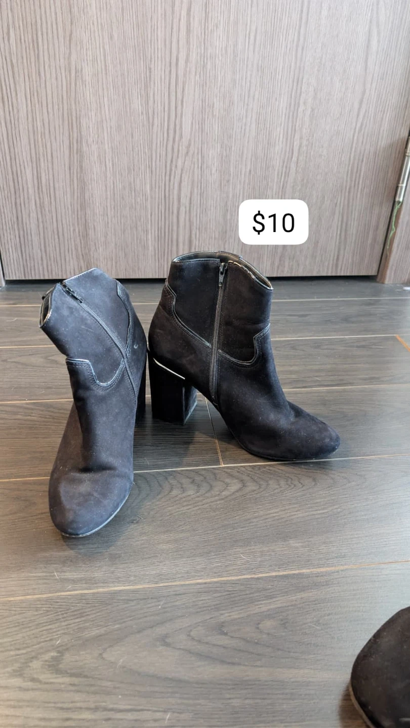 Selling a collection of women's boots. There are 4 pairs in total, including ankle boots and thigh high boots. All are in used condition. $20 for all!