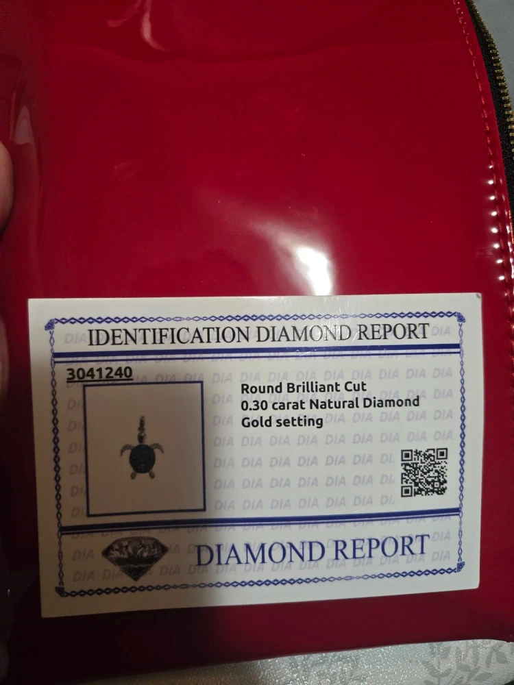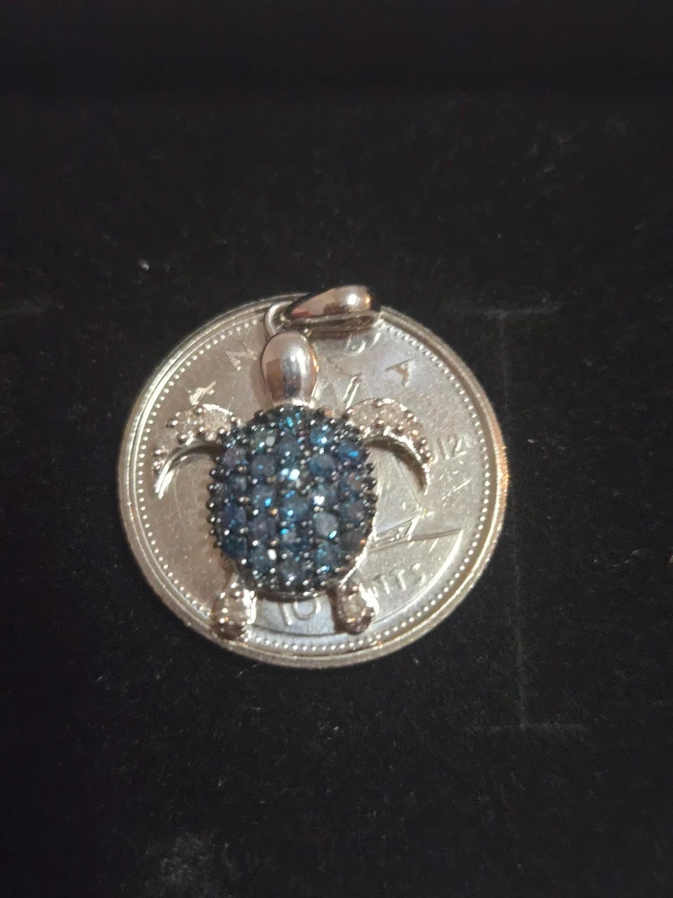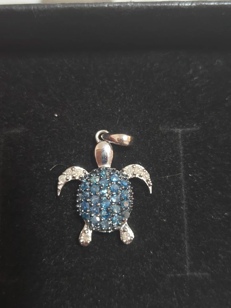 This is a cute turtle pendant with round brilliant cut diamonds. The diamonds are 0.30 carat natural diamonds set in white Japan gold setting. It's a beautiful piece!