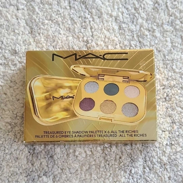 Discover the MAC Cosmetics Treasured Eye Shadow Palette in 'All the Riches'. Featuring a stunning array of colors, this palette is perfect for creating versatile eye looks. Elevate your makeup game with MAC Cosmetics's luxurious shades.