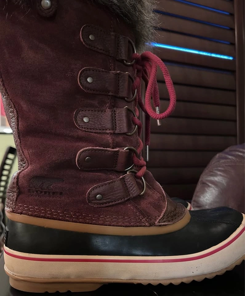 Sorel Joan of Arctic Lux winter boots in a gorgeous, hard to find Rich Wine (burgundy color). Tall, waterproof leather. Size 10.