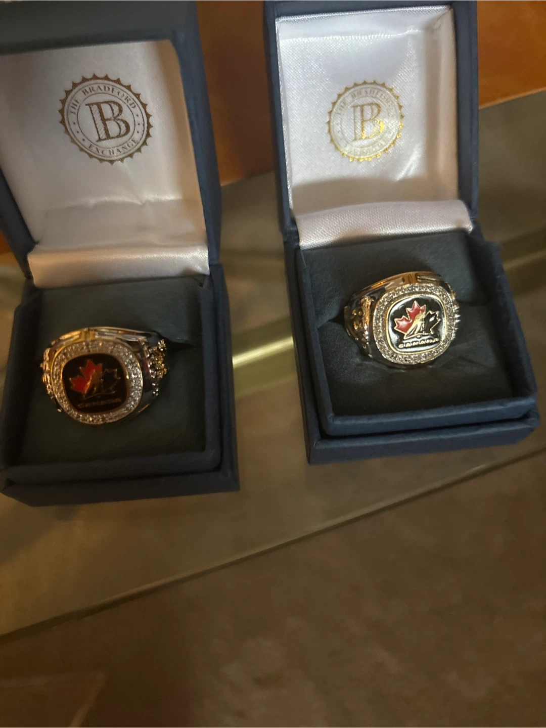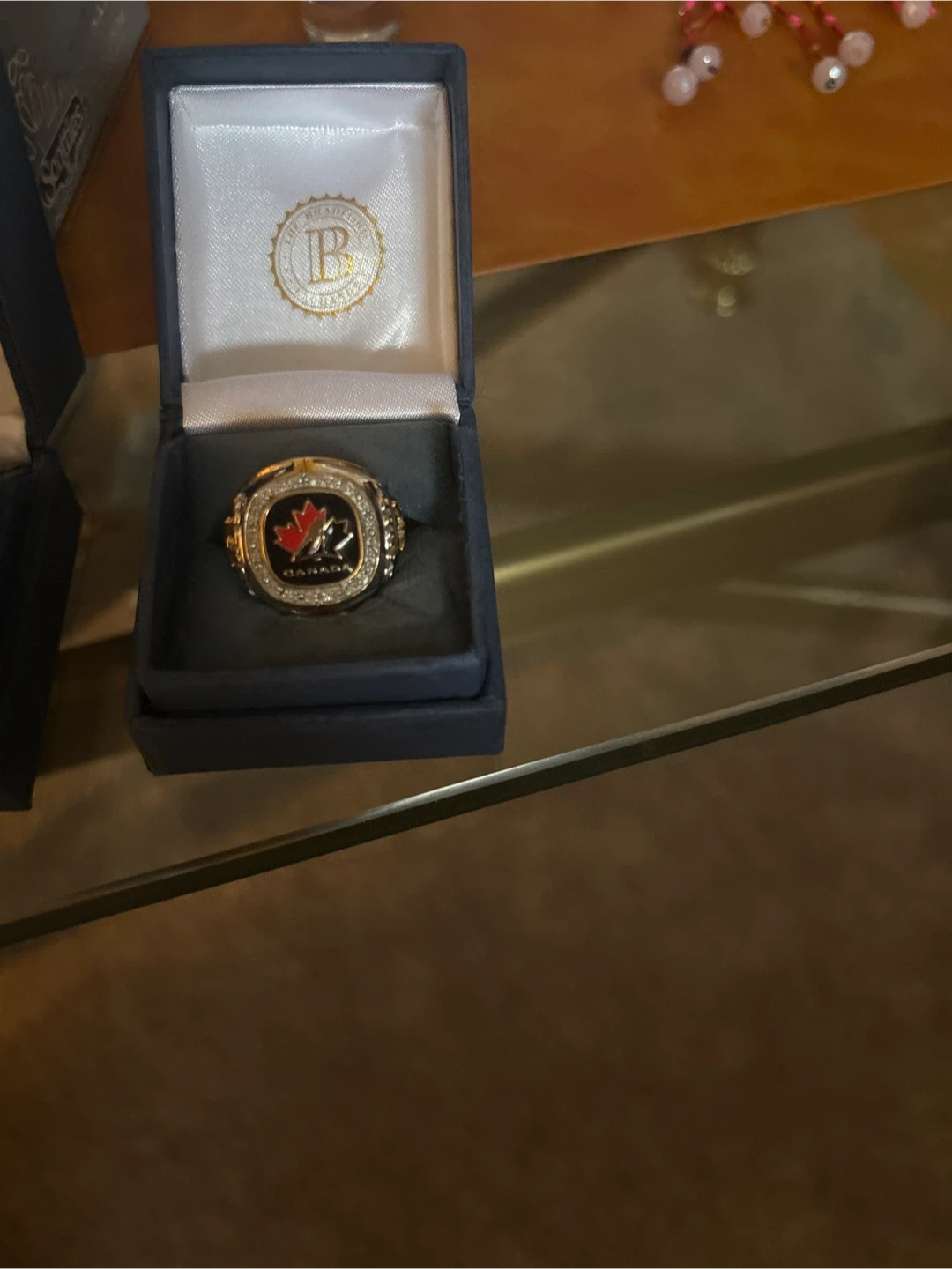 Selling 2 Team Canada ring from The Bradford Exchange. The ring comes in its original box. It features a maple leaf design and is surrounded by stones. $100 each. So 10,8