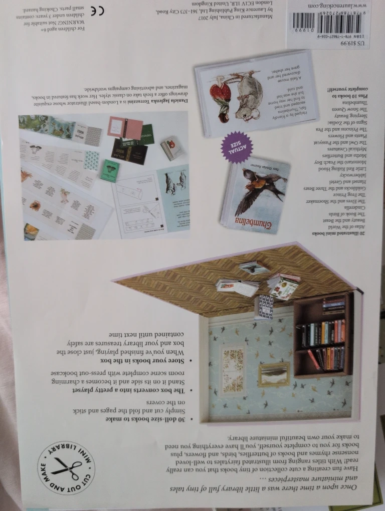My Miniature Library, includes 30 tiny books to make, read, and treasure! It comes with all the components, miniature bookshelf to make as well, all in the box. Wonderful craft idea for your little reader in the family.