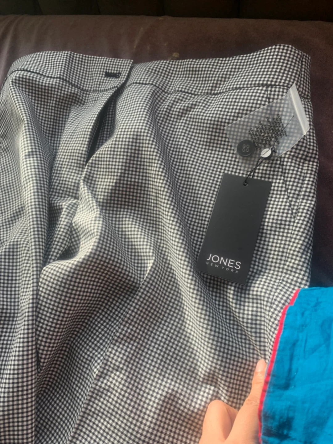 These Jones New York pants are in new condition with tags attached! They are a size 8 and feature a black and white gingham pattern. The colour name is listed as Jones Black/Nyc White. Originally bought for $89.50.