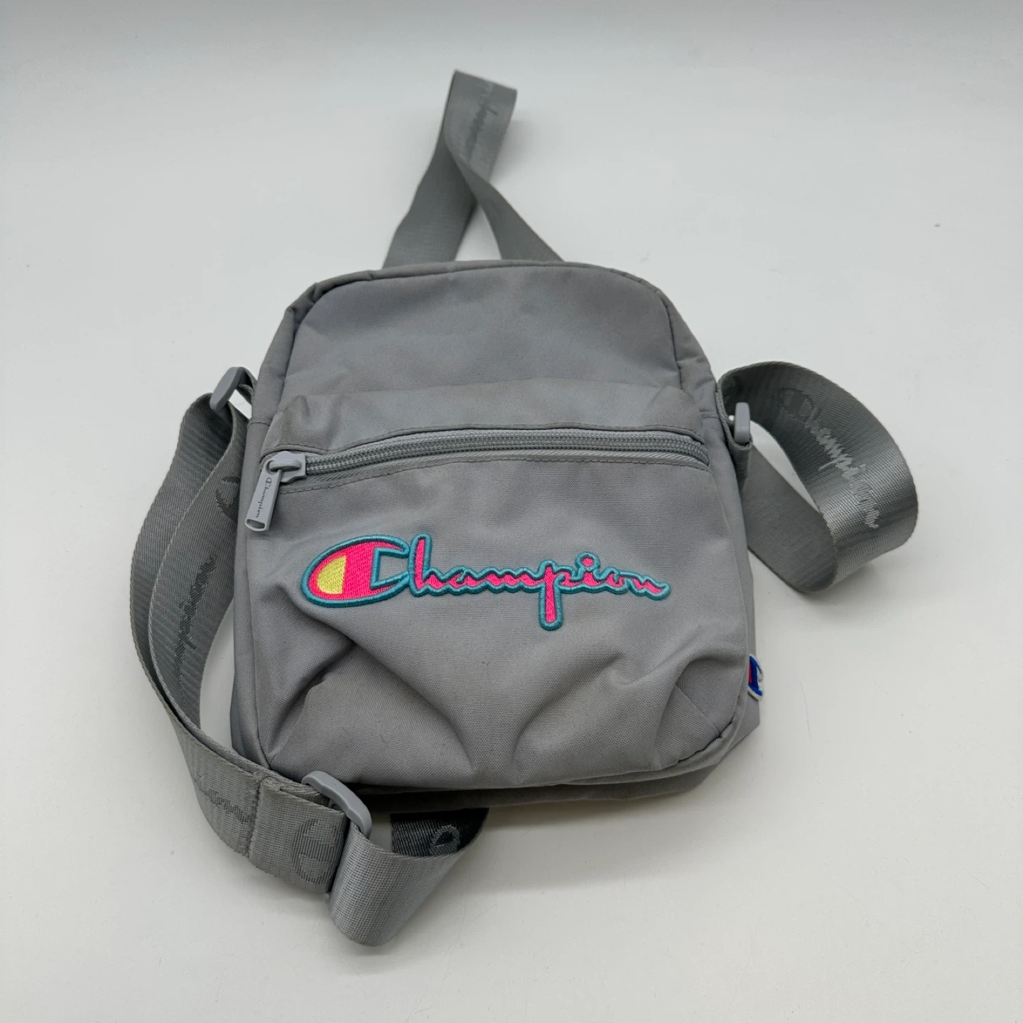 Here's a cute Champion shoulder bag in a neutral grey colour! It's perfect for carrying your essentials. The bag features the Champion logo and has an adjustable strap for comfortable wear. It's in great condition and ready for a new owner!