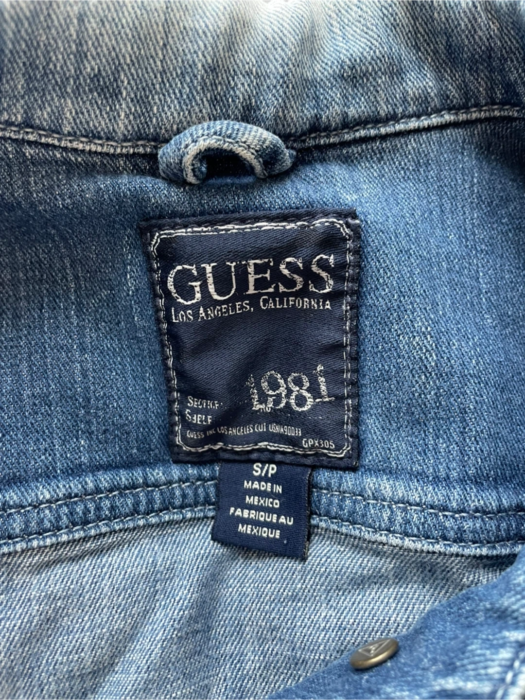 Selling a gently used Guess denim jacket in size S. It's in great condition and perfect for layering! The jacket features a classic design with button closures and chest pockets. Made in Mexico.