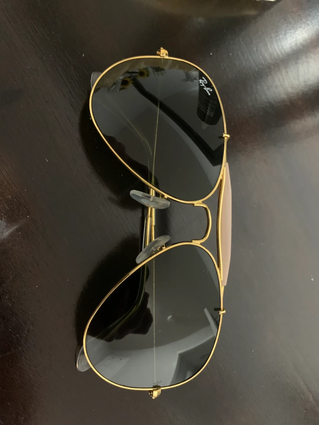 Selling a pair of Ray-Ban aviator sunglasses with a gold frame. They're in good condition and ready for a new owner. Perfect for adding a touch of classic style to your look!