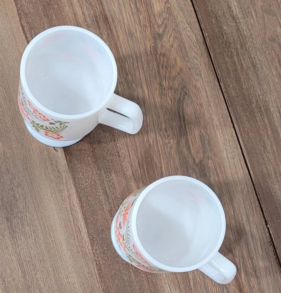 1970's Milk Glass Orange Daisies Coffee Mugs