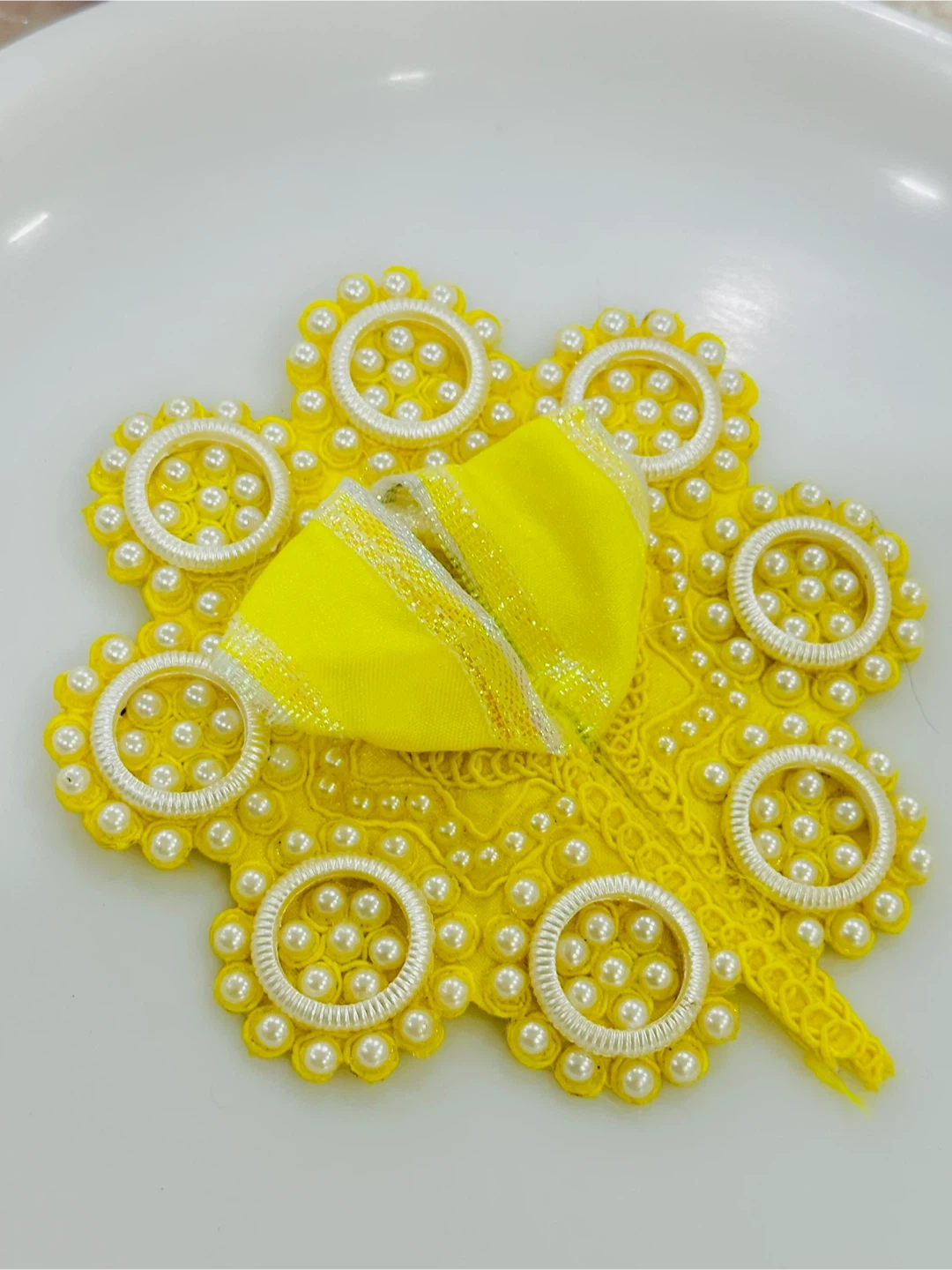 These are adorable dresses for a Krishna idol. They are all handmade with beautiful detailing and vibrant colours. Perfect for adding a touch of elegance to your home!