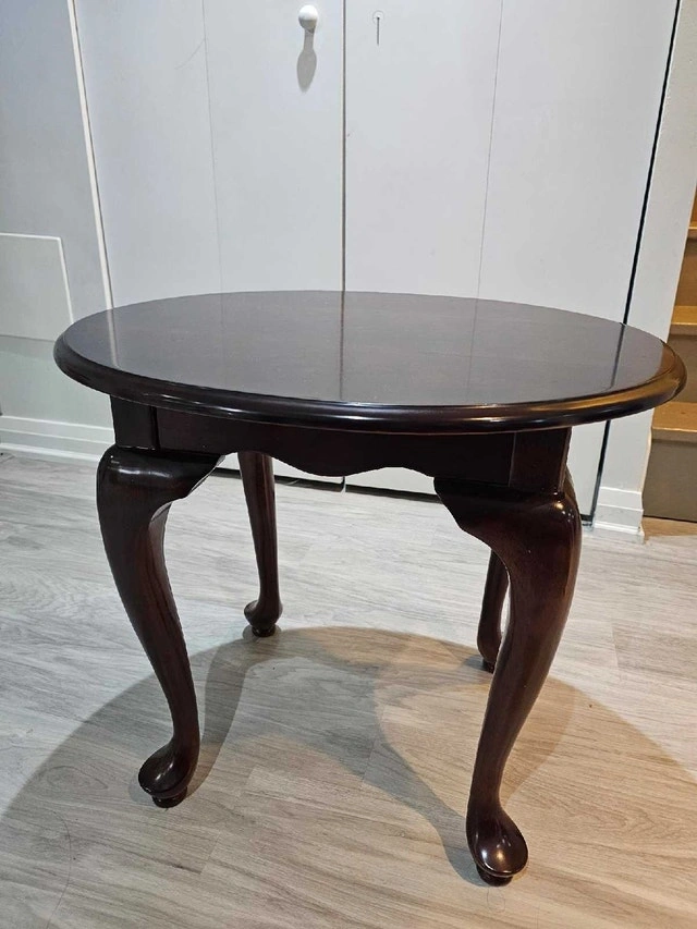 Selling a beautiful vintage oval side table from The Bombay Company. Features elegant Queen Anne style legs and a rich dark mahogany/cherry finish. Perfect as an accent table, nightstand, or entryway piece. Condition: Excellent condition, no scratches. Dimensions: Height: ~22.5 inches Width: ~25 inches Depth: ~22.5 inches Details: Original Bombay Company markings. Solid wood legs and veneer top. Smoke-free, animal-free home. Price: $100 or best offer. Pick-up: Bayview / John.