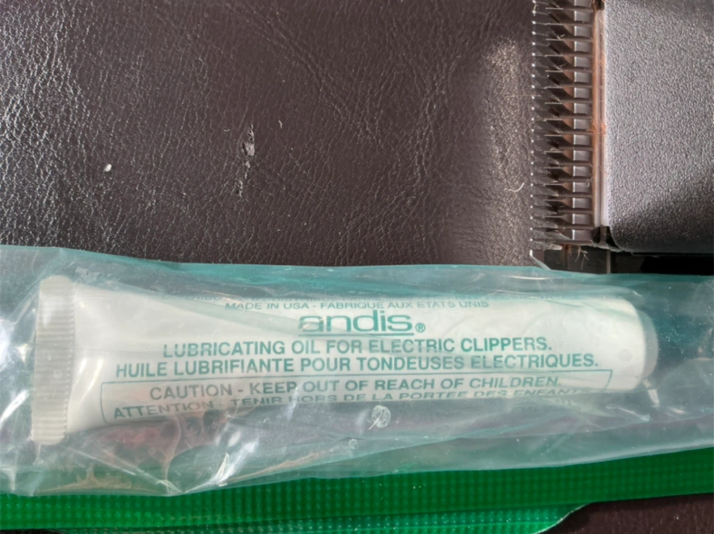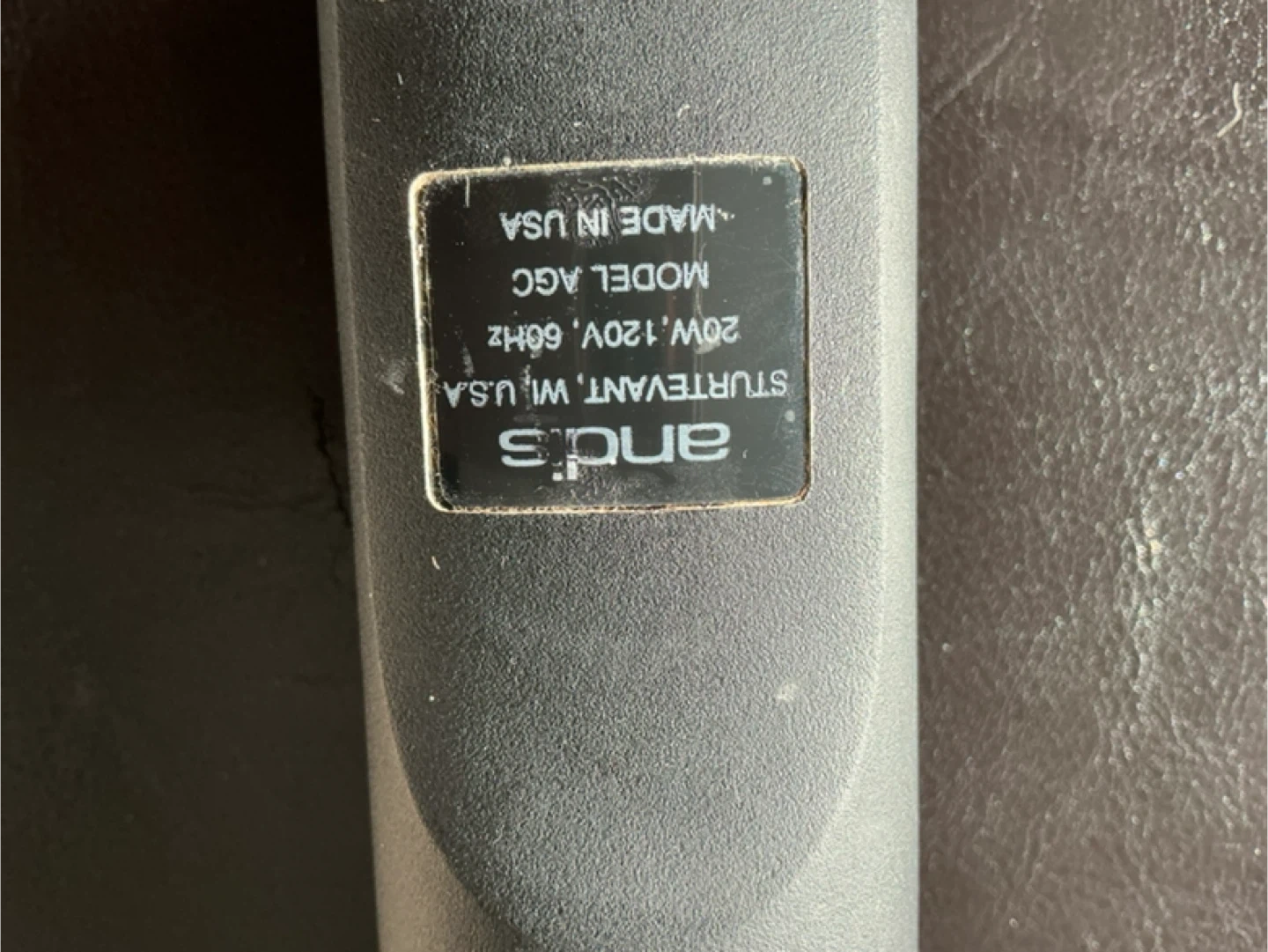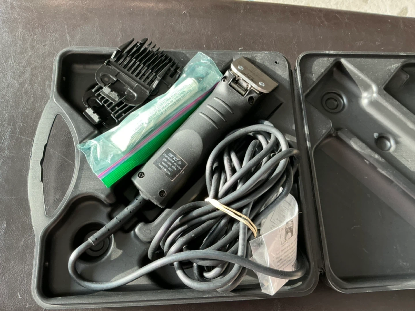Andis ProClip AGC2 (model 22340) 2-speed detachable blade clipper set, made in the USA. It includes the clipper body, #10 UltraEdge blade, a snap-on comb attachment set (likely 8-piece for various lengths), blade oil, grease, and the original storage case—all standard kit items. Excellent used condition: clean, complete, and well-maintained with no visible damage, wear on the cord, or missing parts. This is the better quality trimmer the pros use vs other brands that quit after only a few uses.