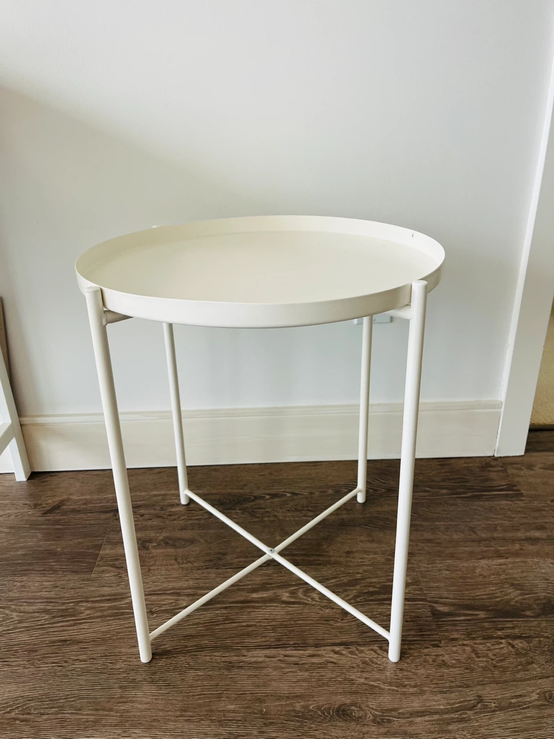 Selling a white IKEA GLADOM tray table! This handy little table is perfect for small spaces and can be easily moved around. It’s in great condition and ready for a new home. Selling the plant too, if you are interested check out my other listings.