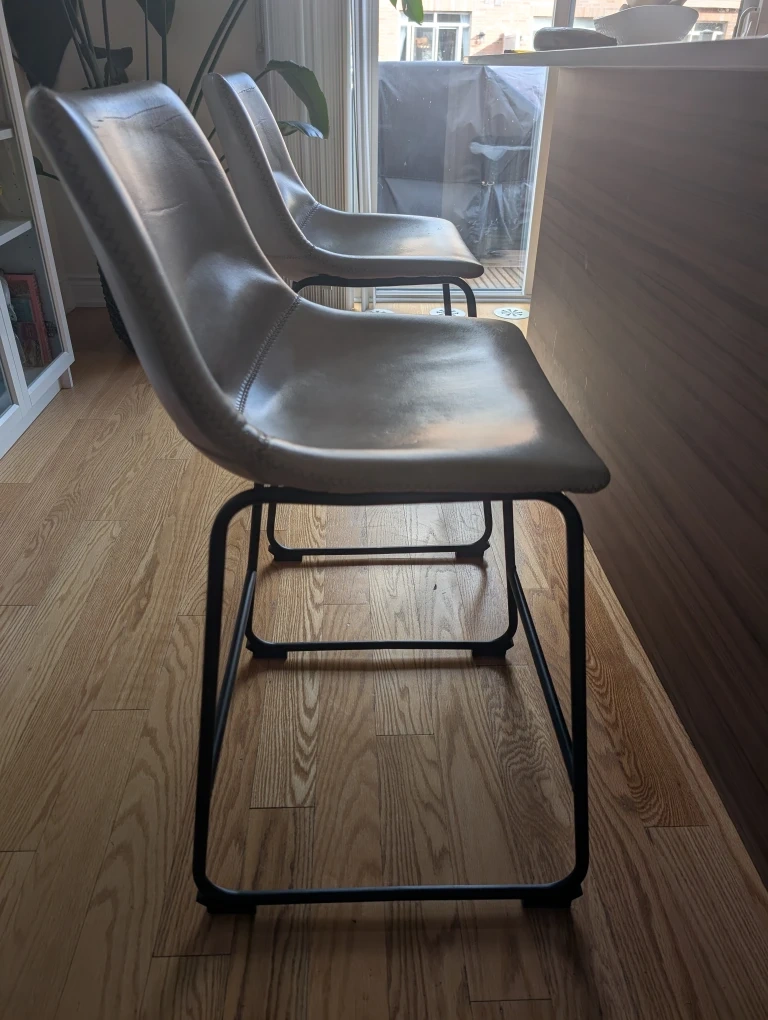 Selling 2 beige bar stool with black metal legs. There are some signs of wear, as pictured. The price listed is $45 for both stools.