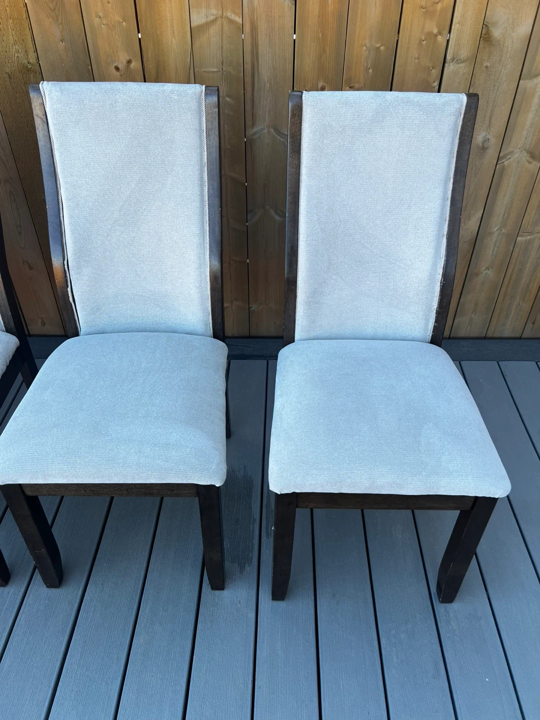 ($140 For All) Set Of Six Dining Chairs. I Recently Re-cushioned And Re-Upholstered These Chairs And Spent About $200 On Materials. I Wasn't Able To Finish Them As Neatly As I Wanted, So l Ended Up Buying New Chairs Instead. If You're Handy Or Enjoy DIY Projects, These Could Be A Great Opportunity To Finish Up And Get Excellent Value.