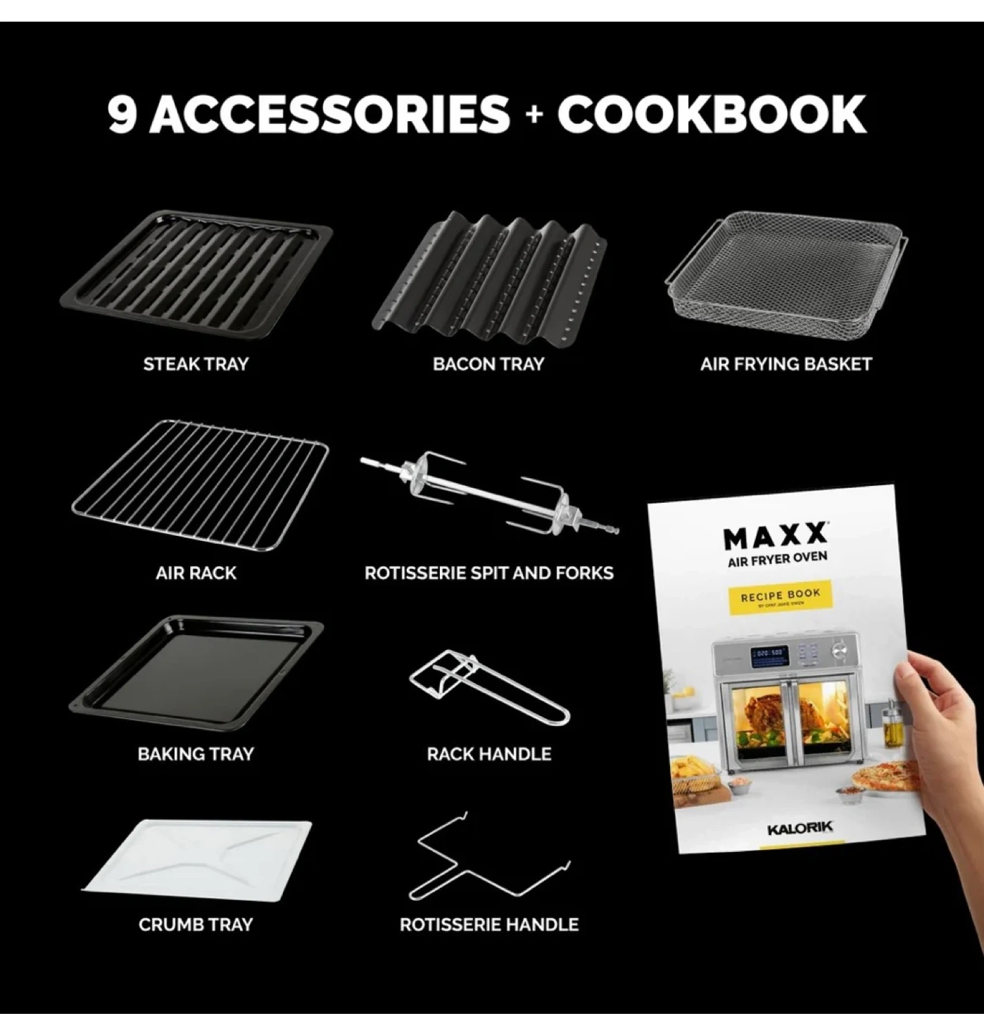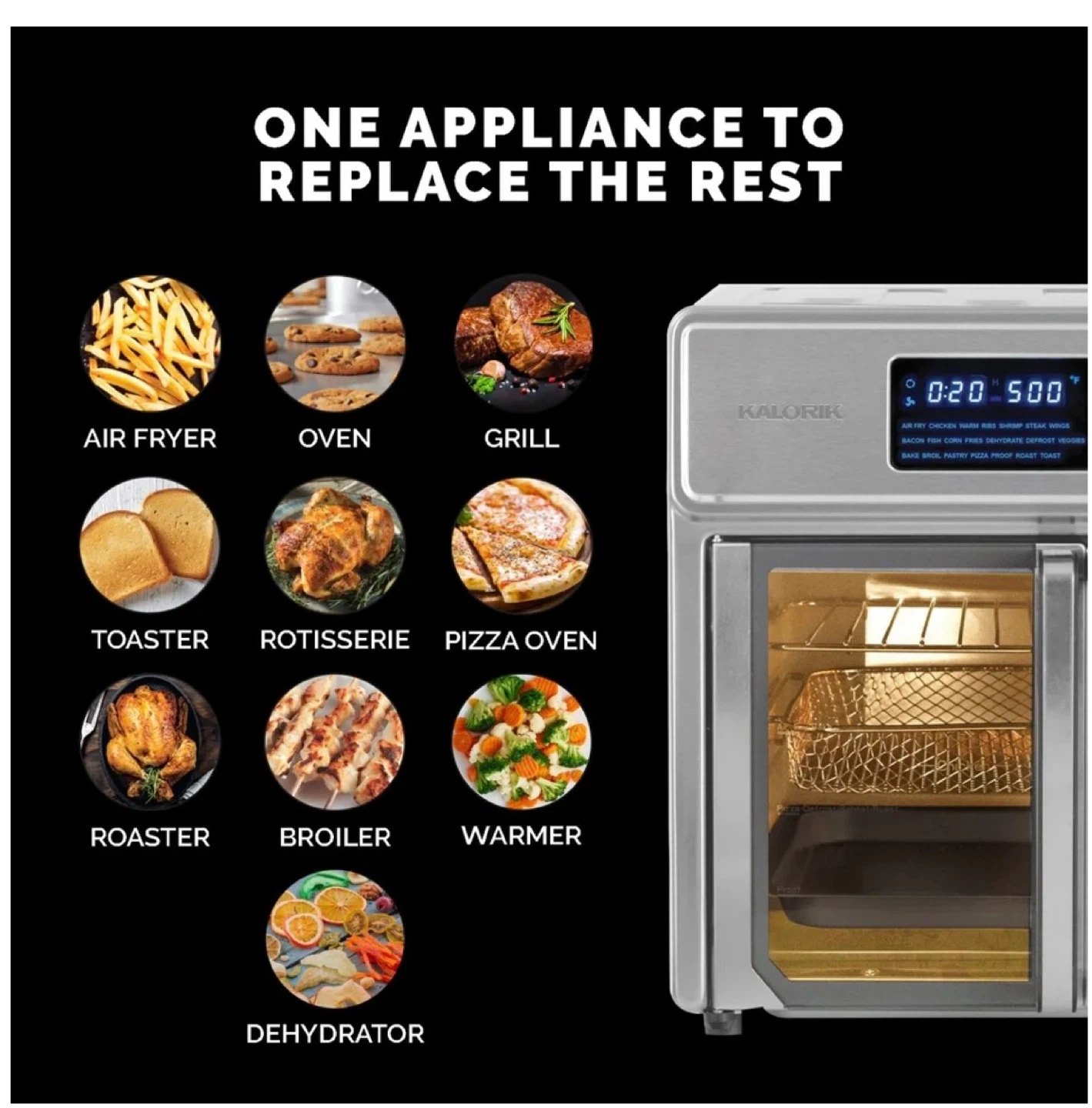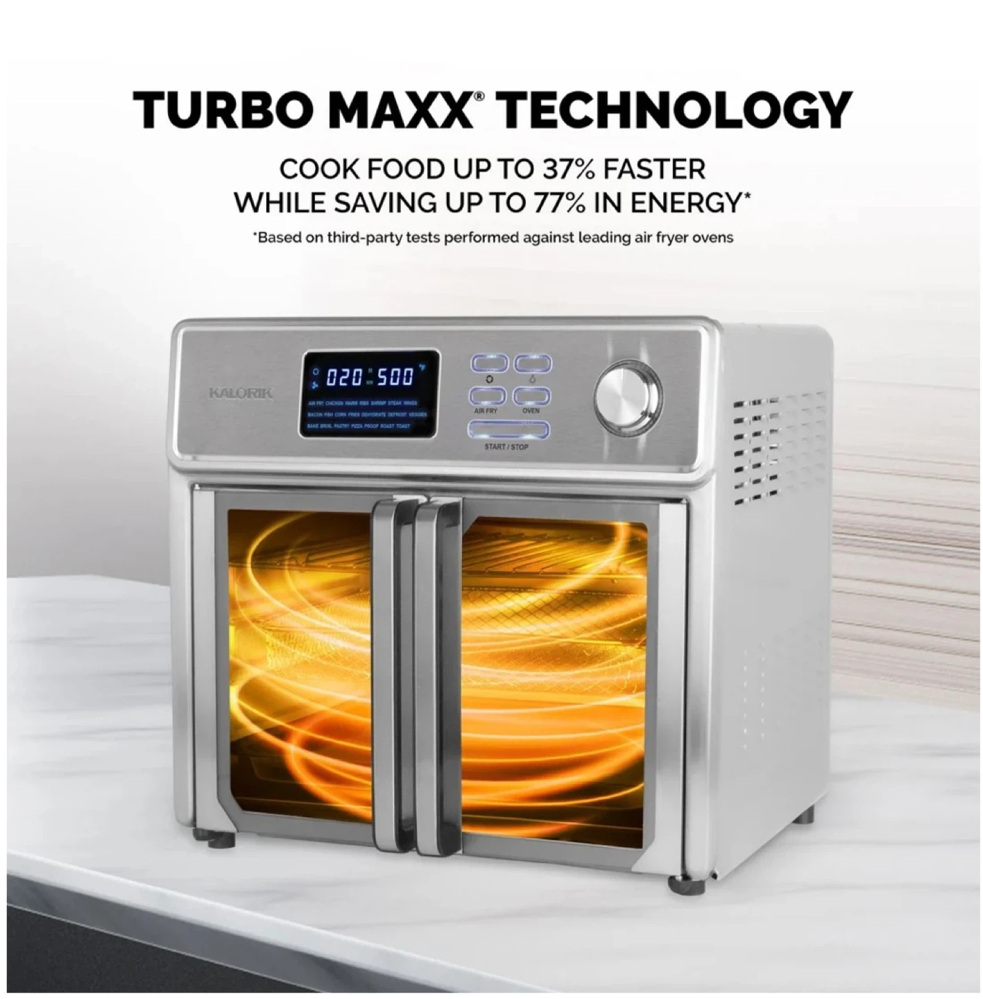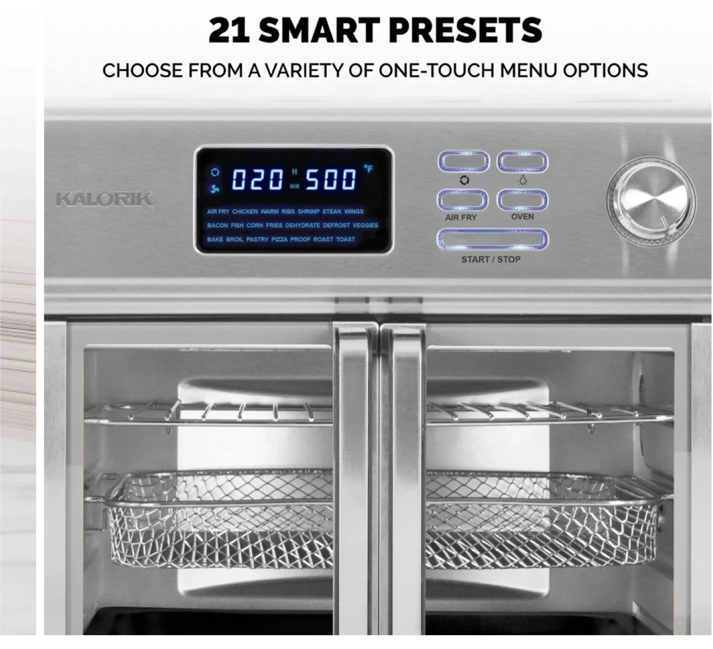 Cook food up to 37% faster while saving up to 77% in energy with this Kalorik Digital Air Fryer Oven! Sear and grill up to 500°F for perfectly caramelized proteins and veggies. It has 21 smart presets and an extra-large 26-quart capacity for family-style meals