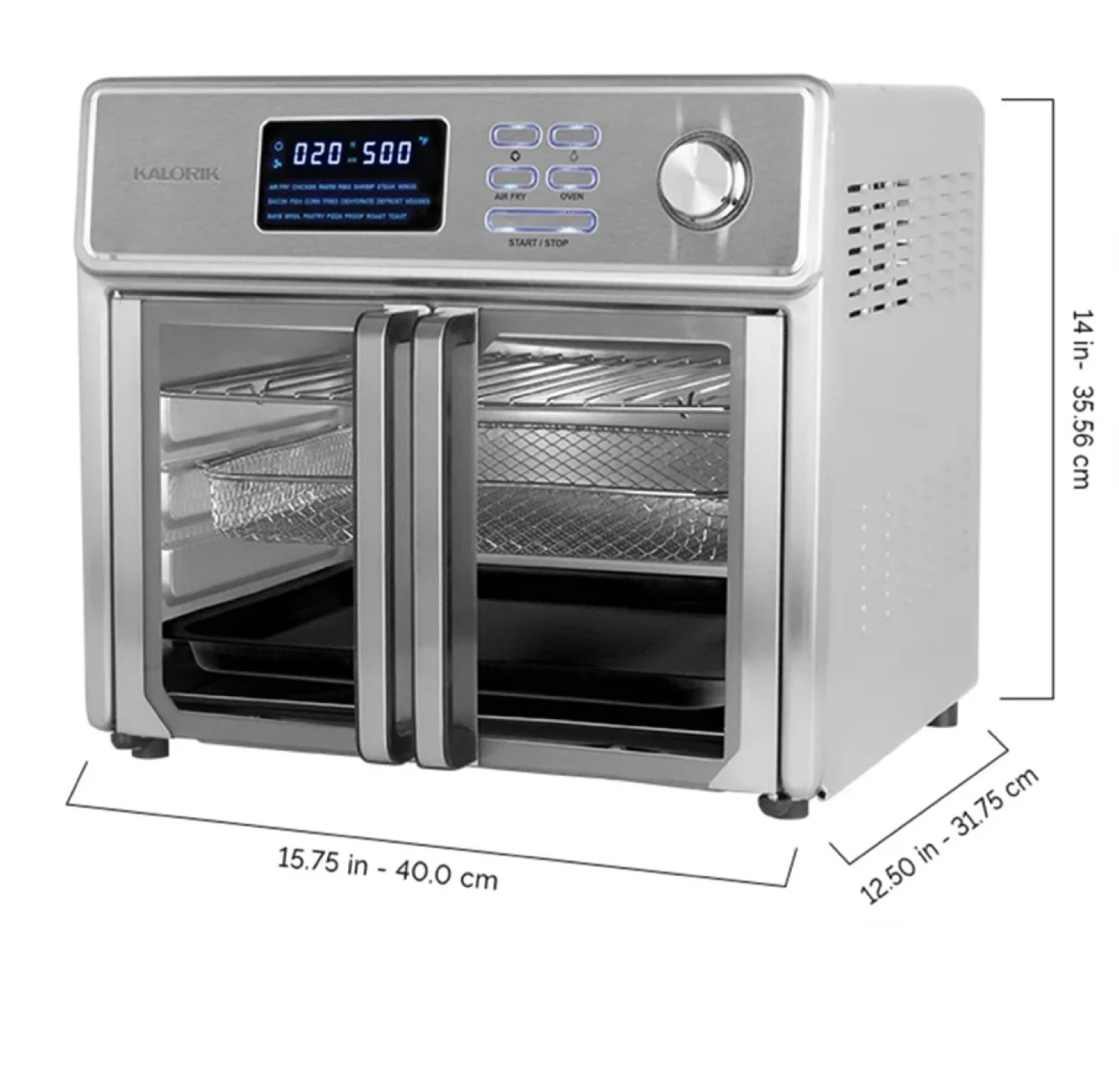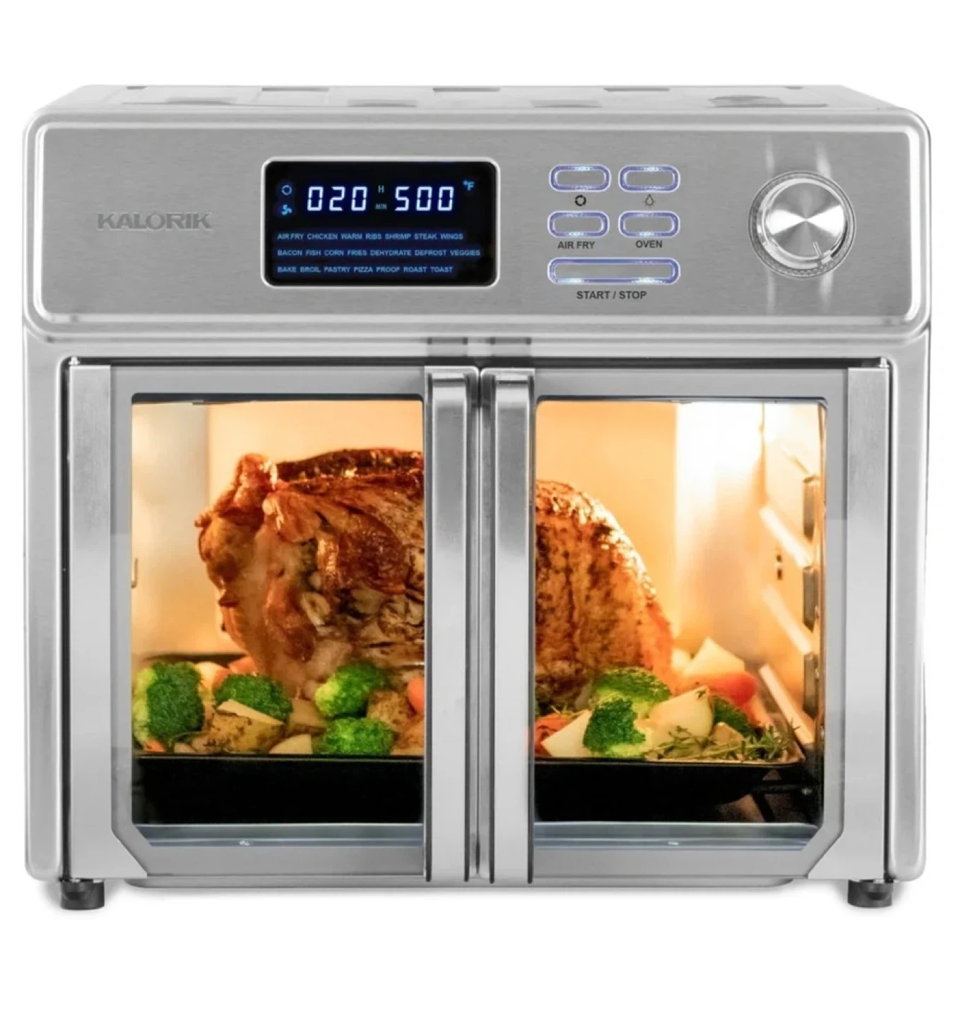 Cook food up to 37% faster while saving up to 77% in energy with this Kalorik Digital Air Fryer Oven! Sear and grill up to 500°F for perfectly caramelized proteins and veggies. It has 21 smart presets and an extra-large 26-quart capacity for family-style meals
