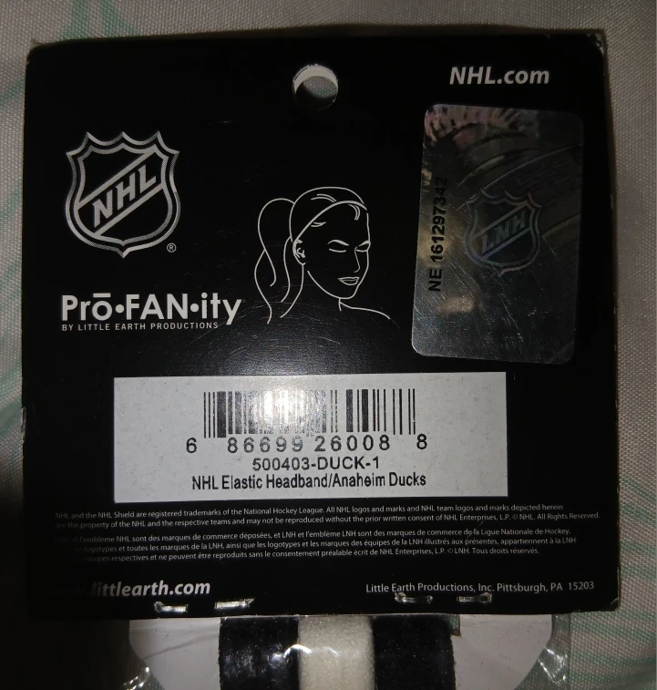 Brand new NHL Anaheim Ducks elastic headband! It features an anti-slip rubber interior to keep it in place while you cheer on your favourite team. Perfect for any Ducks fan. I HAVE 2. $10 EACH