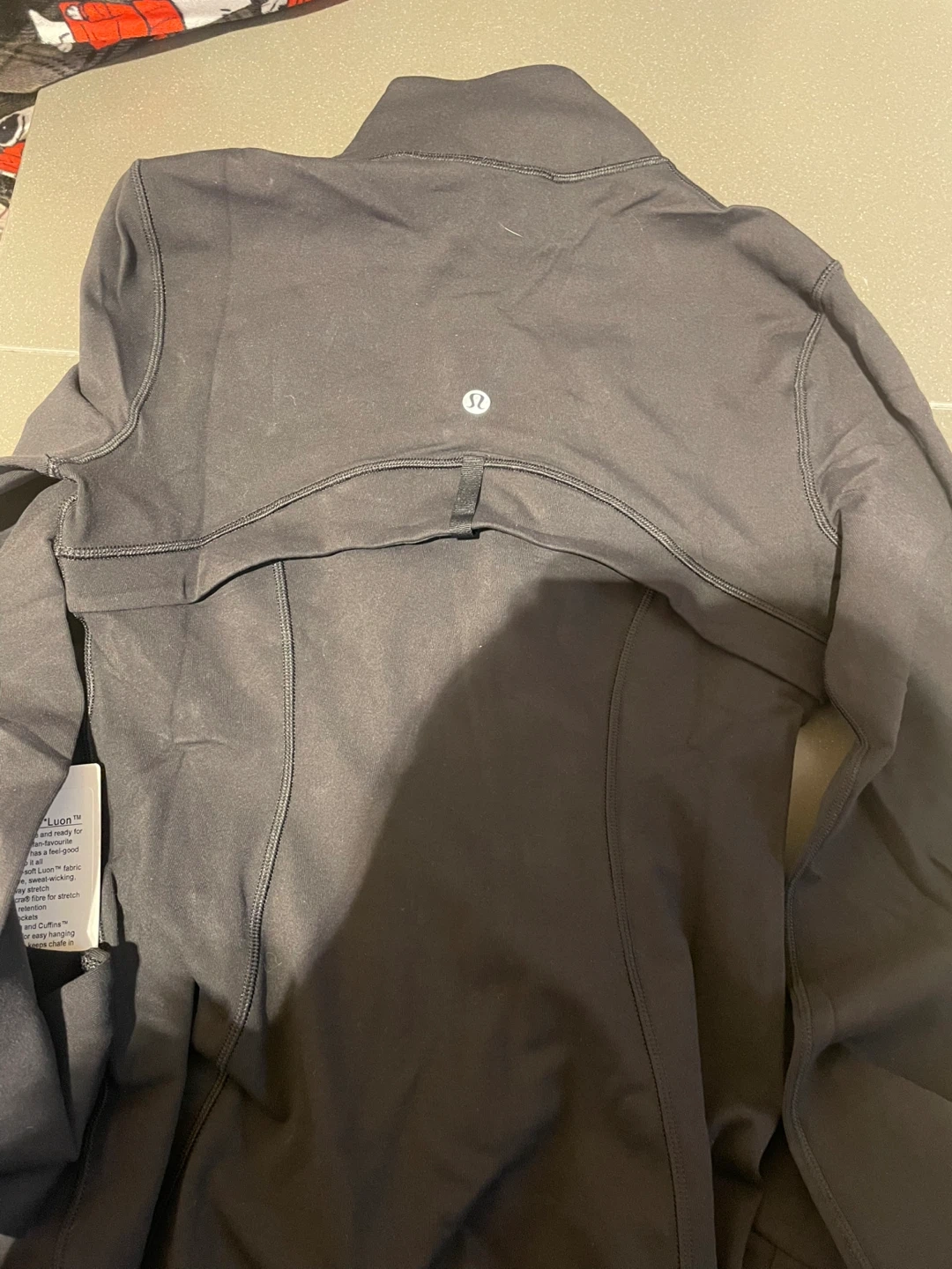 Selling a Lululemon Define Jacket in black, size 4! This jacket is made with Luon fabric, which is supportive, sweat-wicking, and has four-way stretch. It also features thumbholes and cuffins, as well as zippered pockets. The elastic zipper pull doubles as an emergency hair tie, so handy!