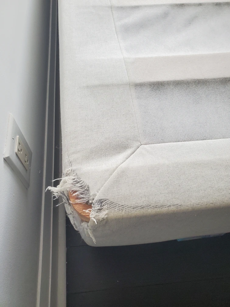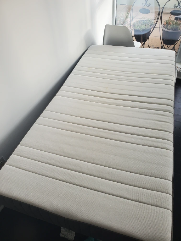 Selling an IKEA twin bed. Please note that there is some damage to the corner on the mattress base as shown in the photos.
