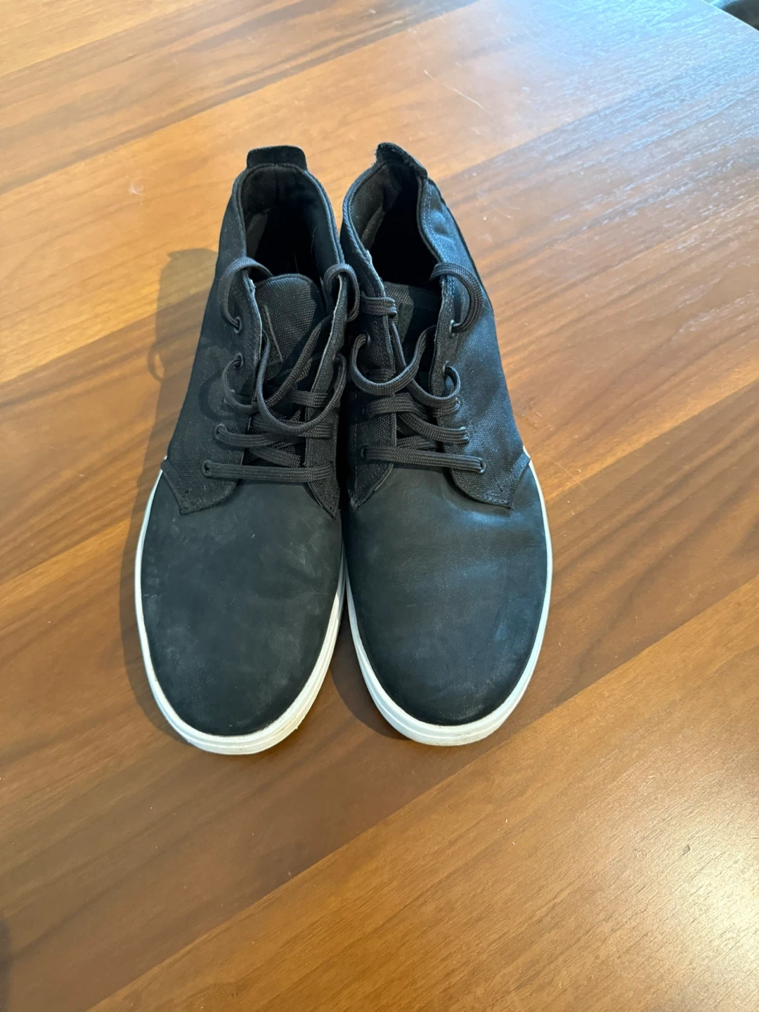 These are a pair of Timberland chukka sneakers in black. They are in good condition and ready for a new owner! They would be great for everyday wear.