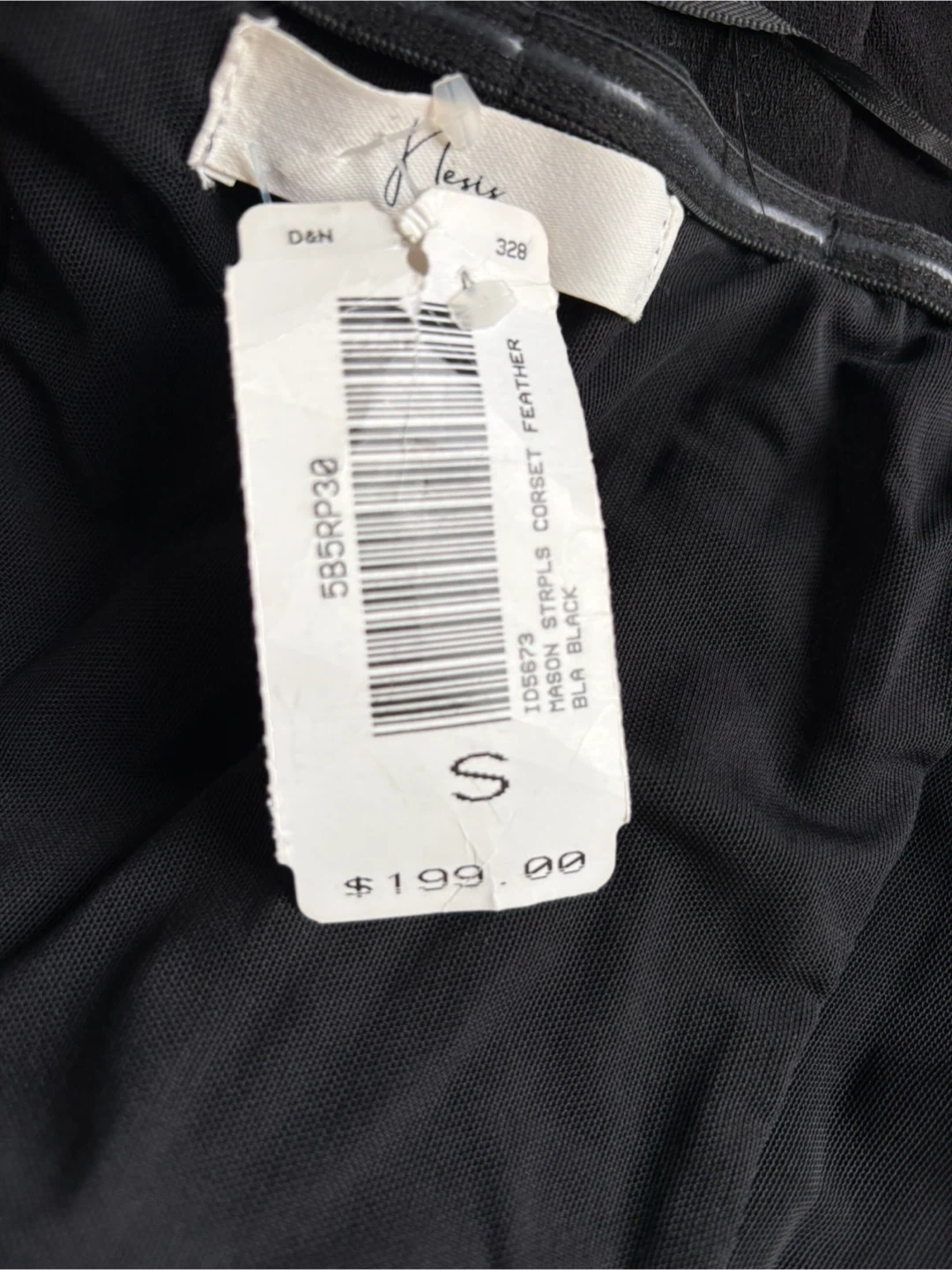 Klesis Black Kori Strapless Midi Dress Feathered Bottom Boned Corset Zip Back
