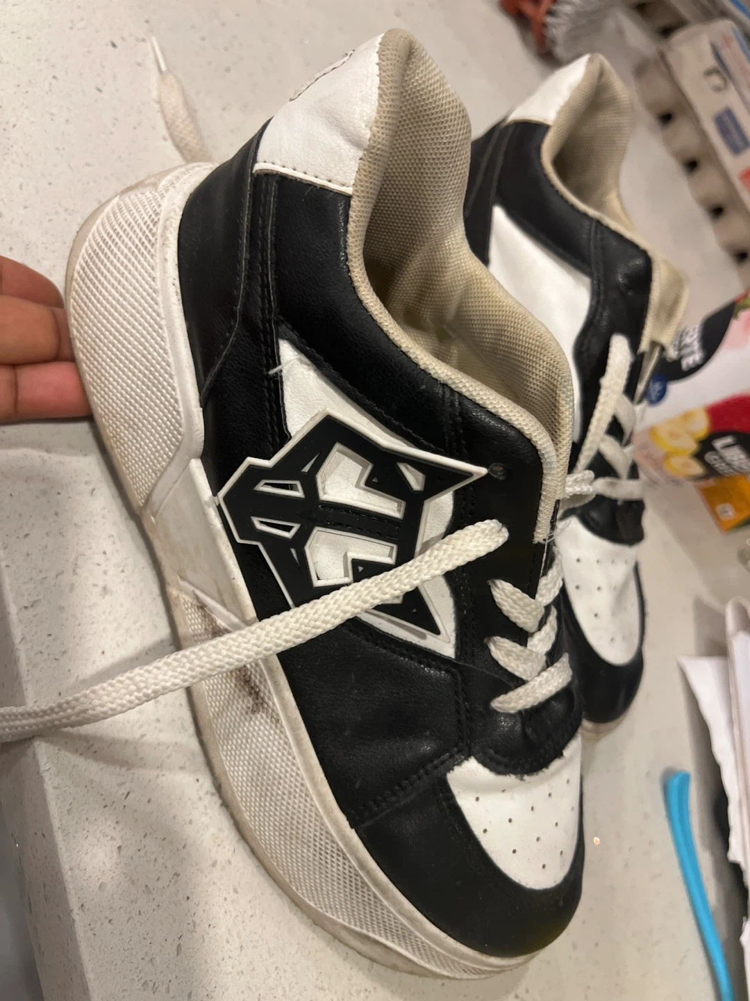 Giving out black and white shoes. They show some signs of wear, as you can see in the photos, but still have lots of life left in them. If you can wash them