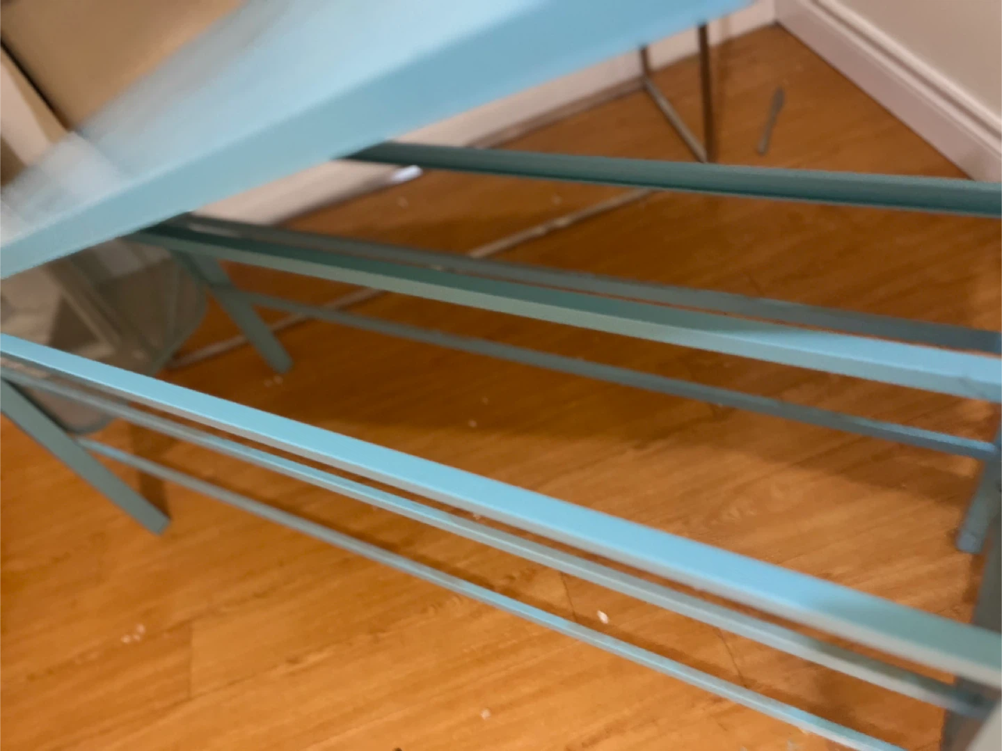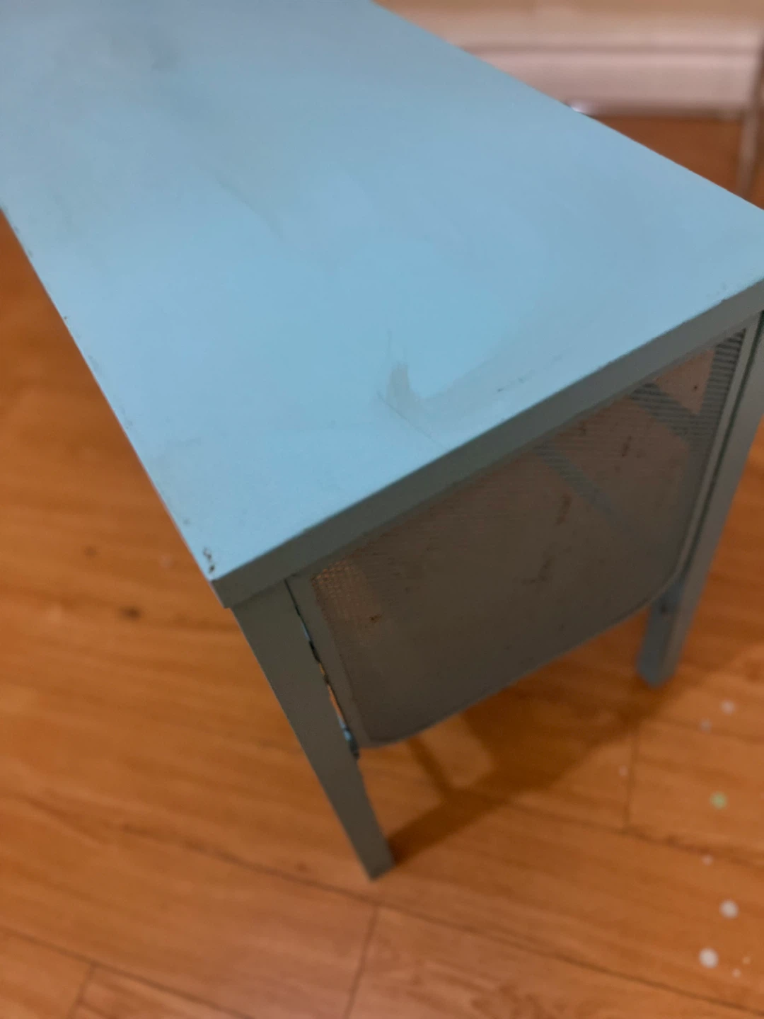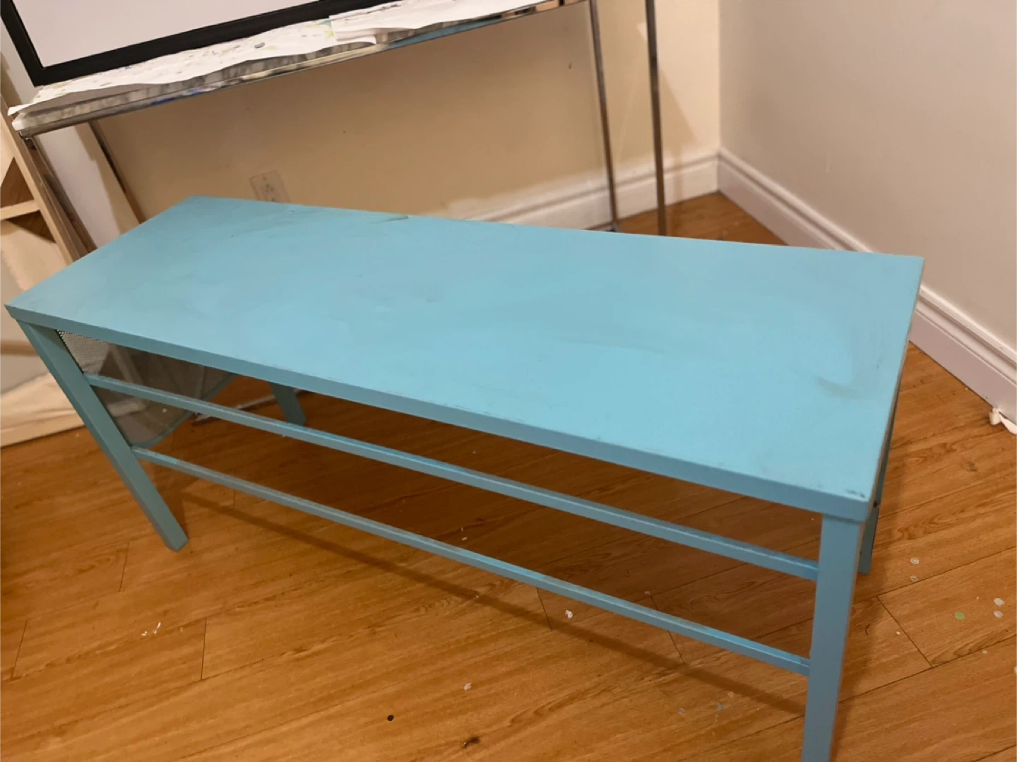 Here’s a cute blue bench! It's perfect for adding a pop of colour to any room. It's in great condition and ready for a new home