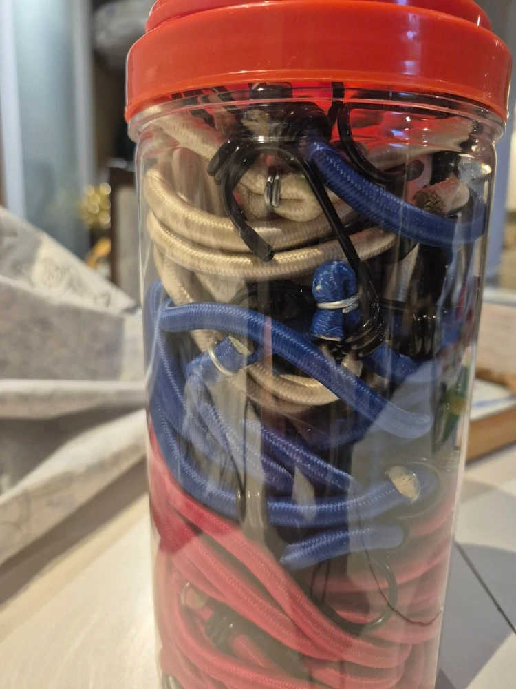 Selling a Grip 30 PC Elastic Strap Set. It's great for quick and convenient load binding. Use to secure tarps or loads on bikes, cars, motorcycles, trucks, and more. It has vinyl coated steel hooks and woven polyester protect surfaces from scratches. Contents: 10 pc 12", 10 pc 18", 10 pc 24"