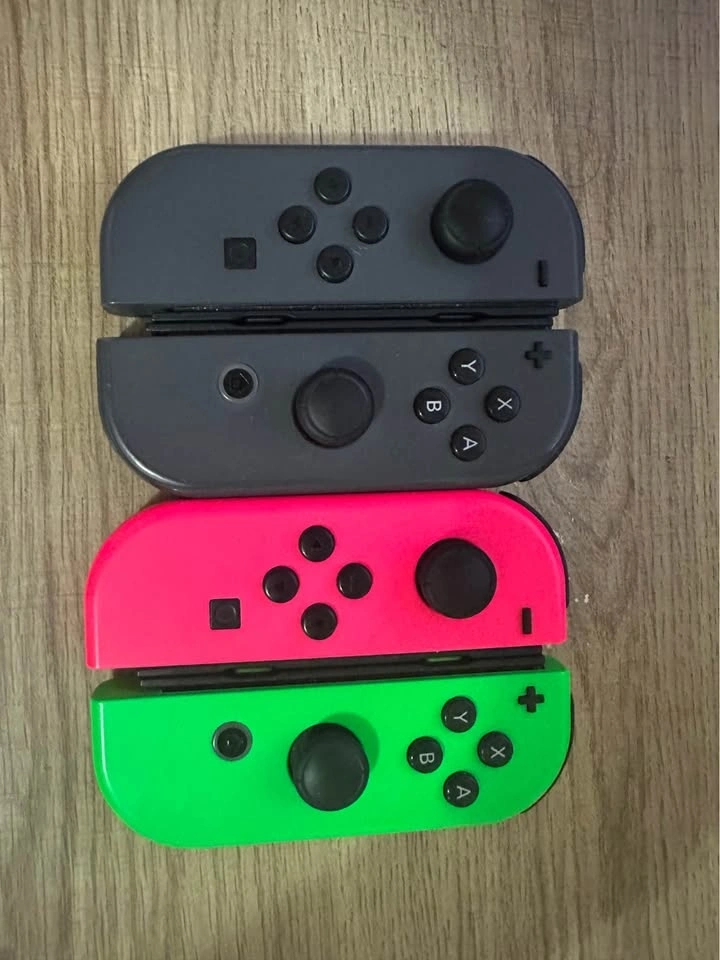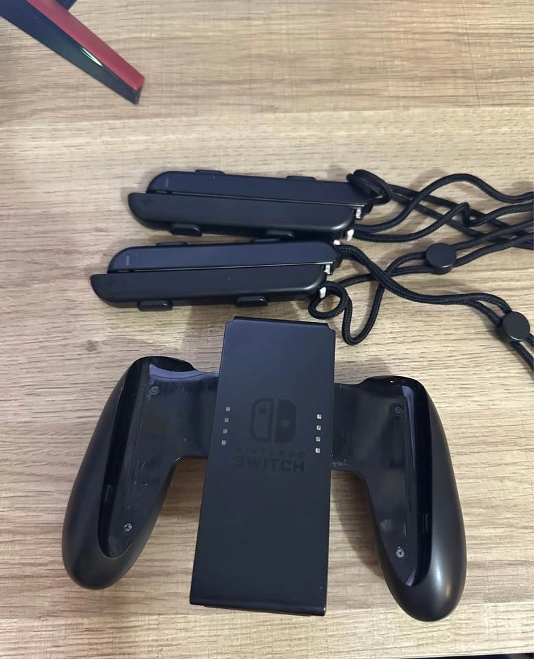Nintendo Switch with small chips in the screen and scratches on the screen border from the dock. The screen is functional. Both joycons connect to the Switch in handheld mode; however, if you pull up on the right joycon, it disconnects. Pushing it back down seems to fix the issue. It seems to be an issue with the Switch itself (could be due to dust). However, using joycons wirelessly has no issues. Comes with 4 Joycons, all without known issues. The black ones came with the Switch, and the left one was replaced ~2 years ago due to drift. Comes with a game, dock, charger, Joycon charger, stand (flimsy but works), Joycon grips, and Joycon straps. Feel free to message if you have any questions!