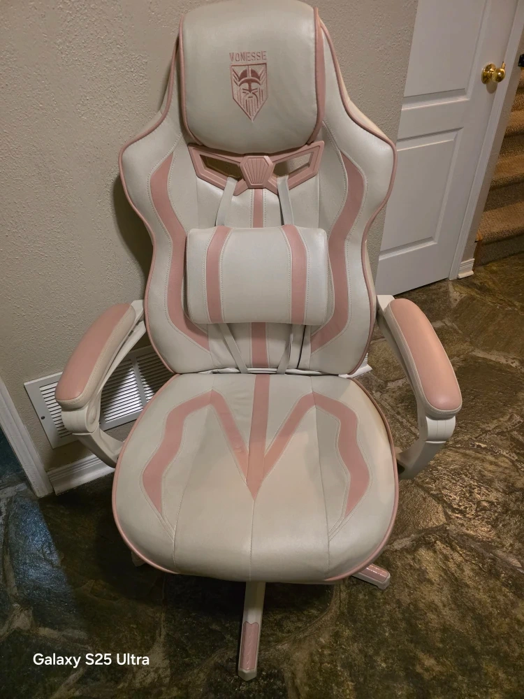 Selling a Voness gaming chair in a lovely white and pink colour scheme. It's in great shape and ready for a new gamer.