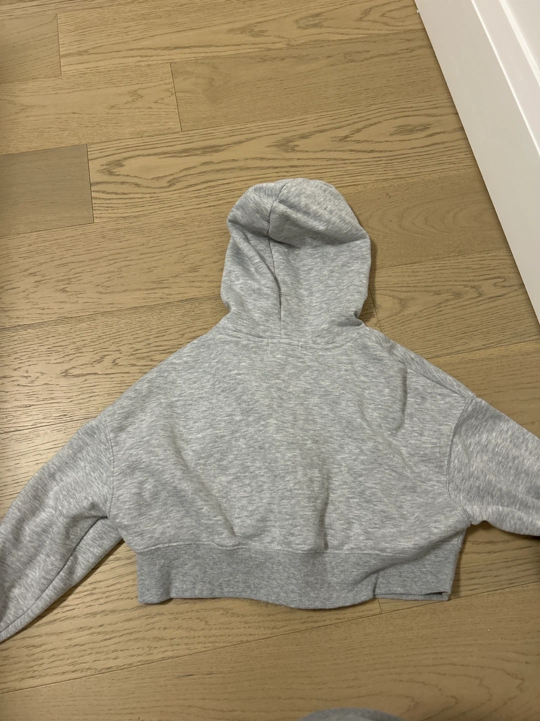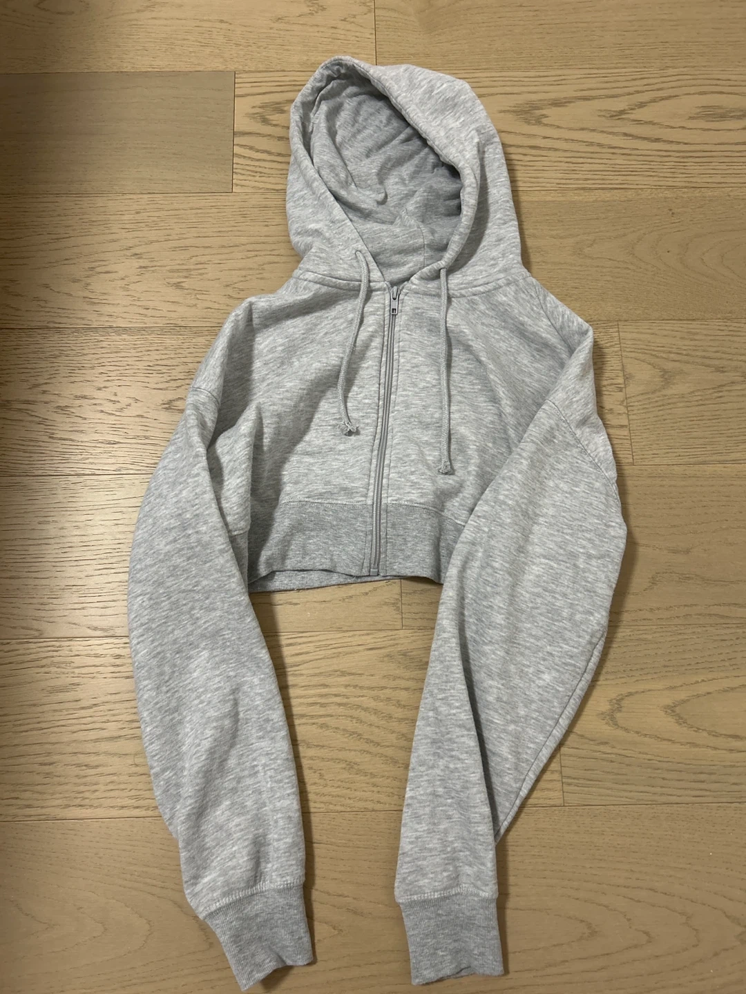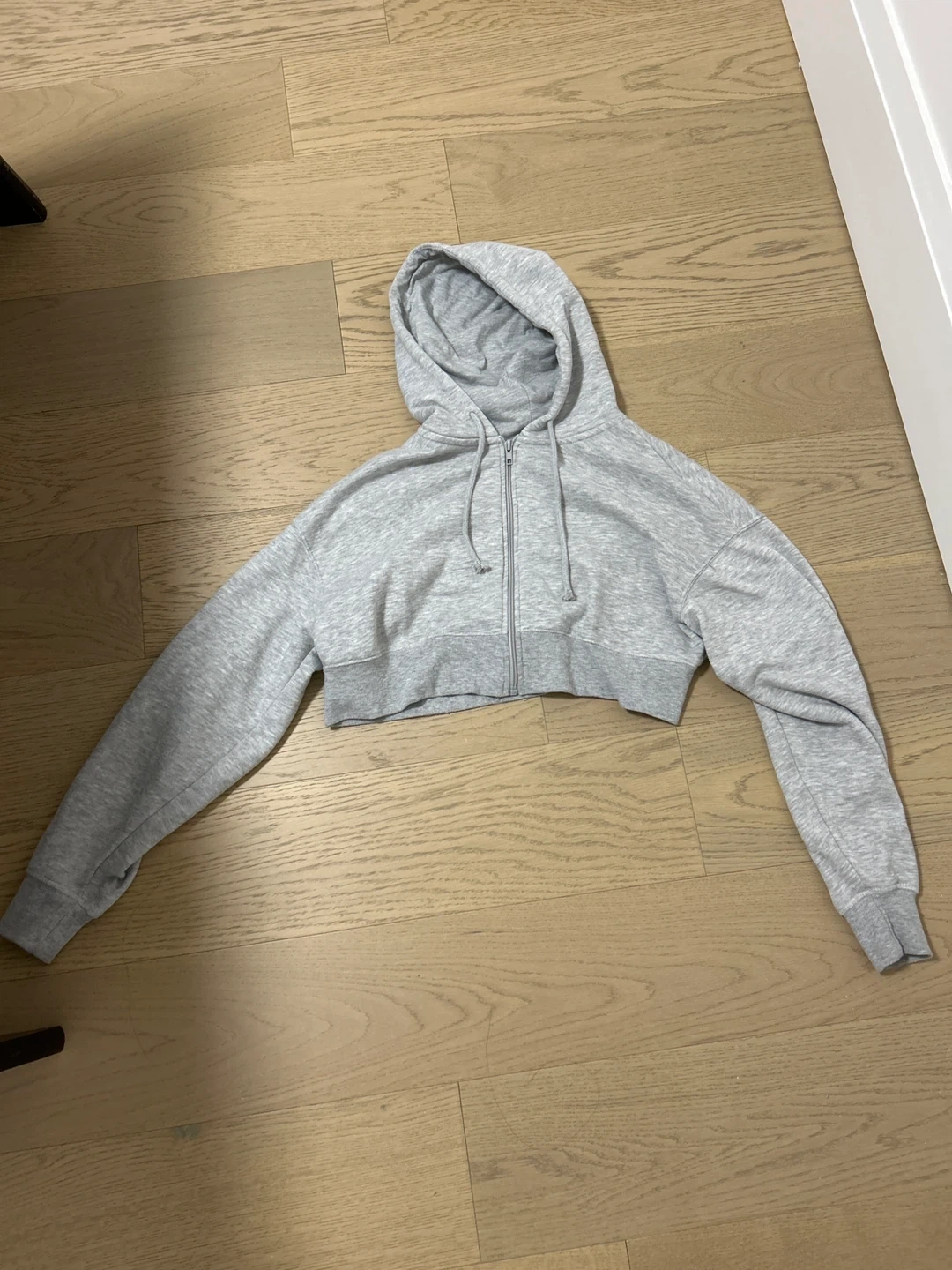 Selling a gently used cropped zip-up hoodie in a light grey colour! It's a size medium and would be a great addition to your wardrobe. It's in great shape and ready for a new home! Worn once or twice!