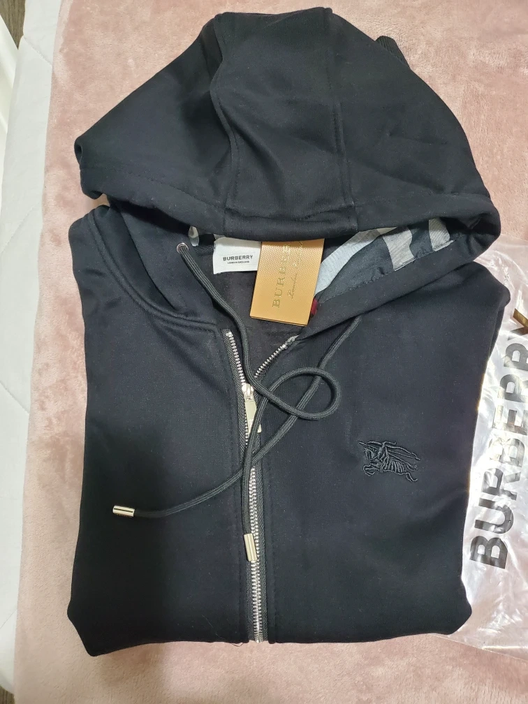 Selling a Burberry black zip-up hoodie.The classic design and quality material make it a stylish and comfortable choice for any wardrobe, 100 % cotton made in italy..