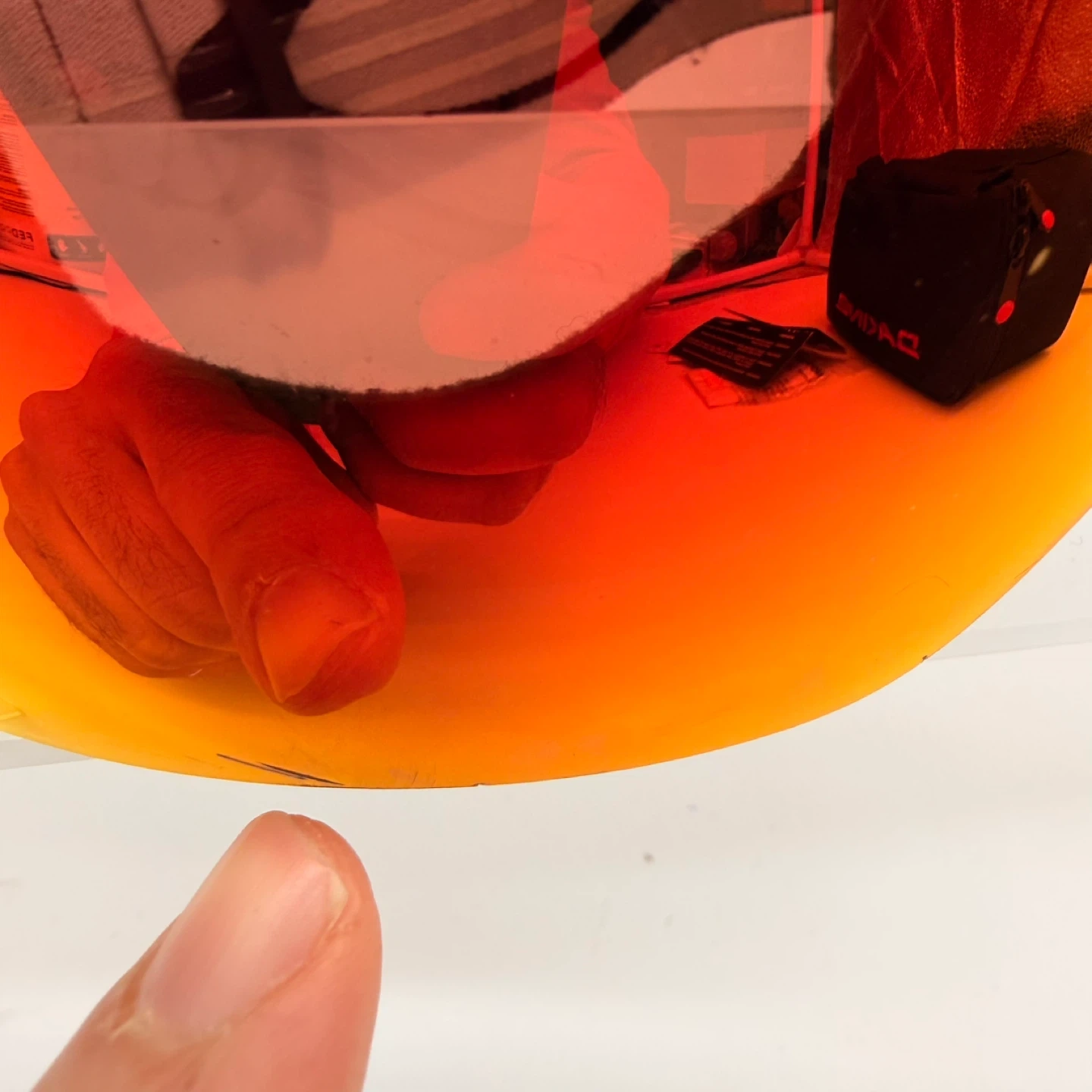 The lens has visible scratches on the side and bottom edges, clearly shown in photos.