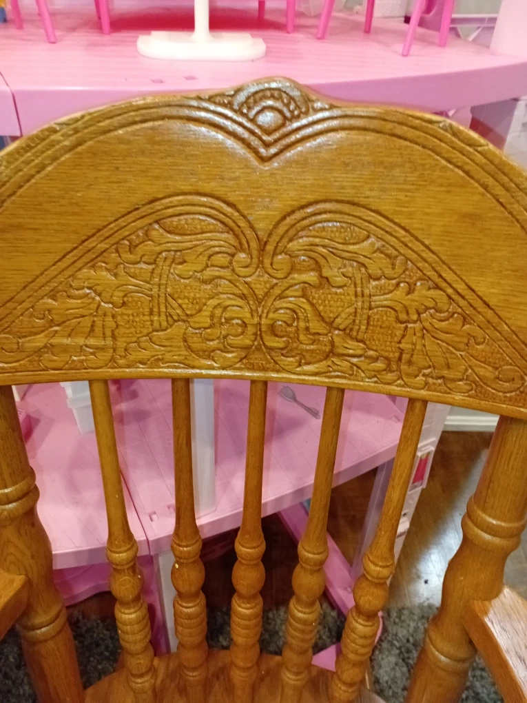 Selling a wooden armchair. It's in good condition and has a lovely, classic design. Perfect for adding a touch of warmth to any room in your home! Kids size