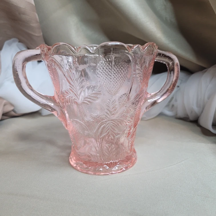 Fenton Vintage Pink Depression Glass Strawberry Double Handle...