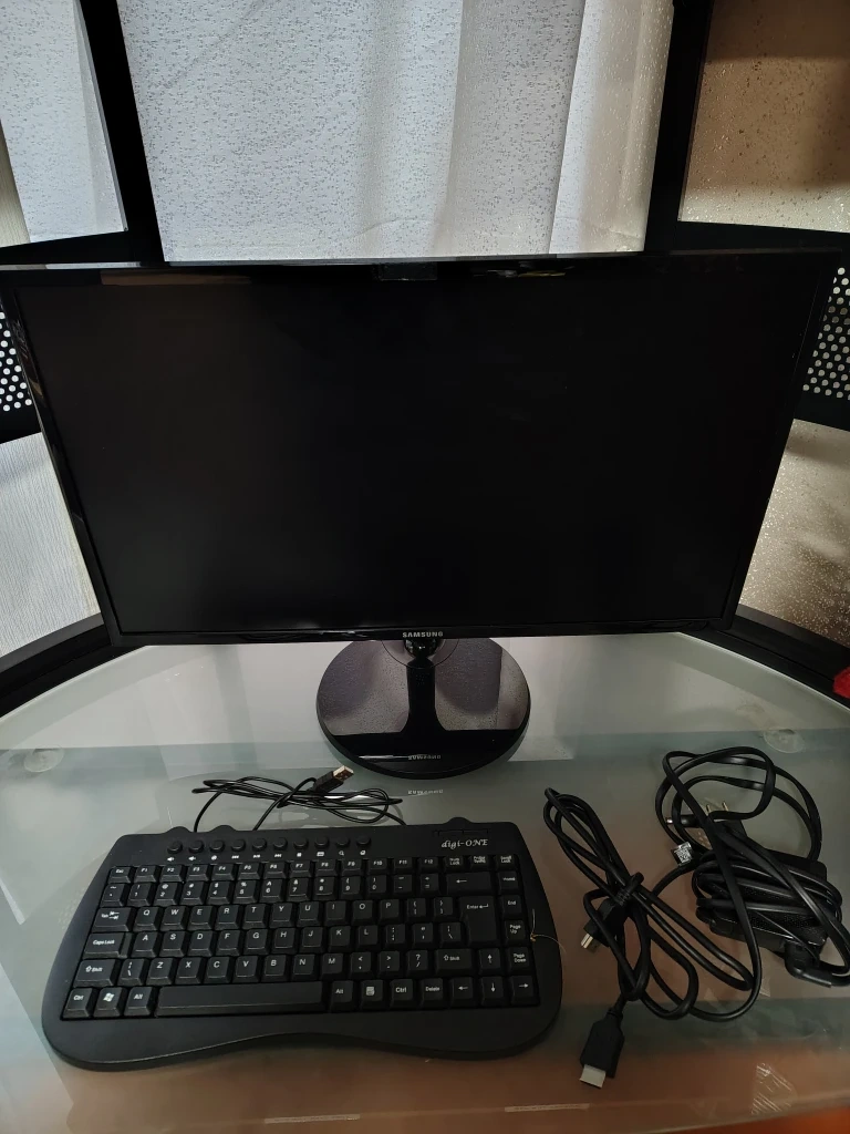 Selling a Samsung 24-inch monitor, model S24A400BHN. It comes with a Digigone keyboard and all the necessary cables. Great for a home office or gaming setup!