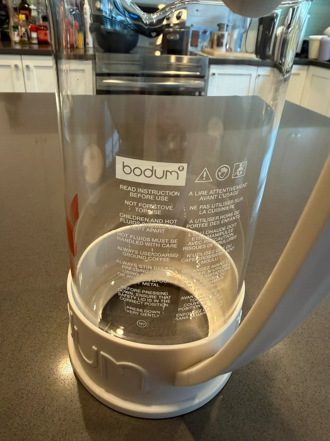Selling a Bodum French press! It's in great shape and ready to make your morning coffee or tea. The glass carafe is clear, so you can watch your brew steep to perfection. It's easy to use and clean, making it a convenient addition to your kitchen