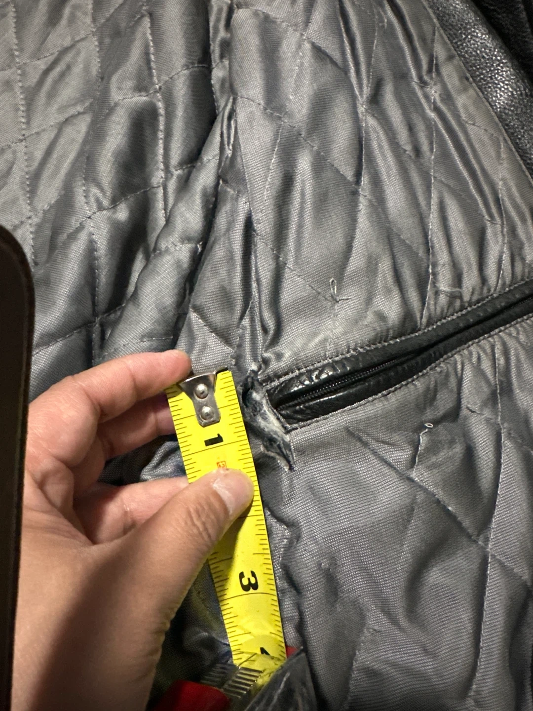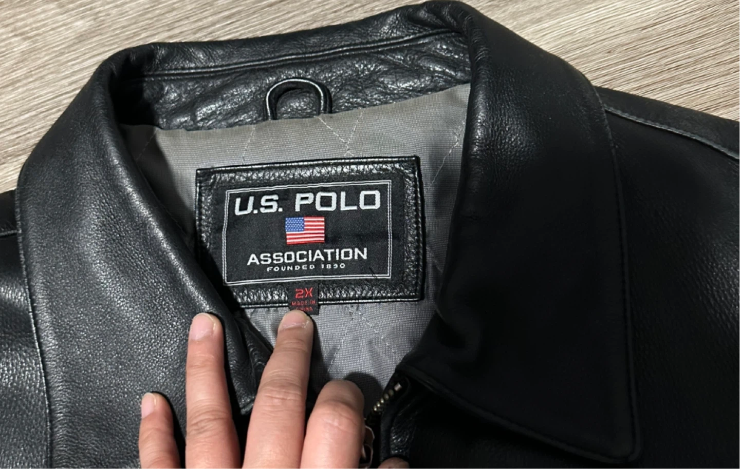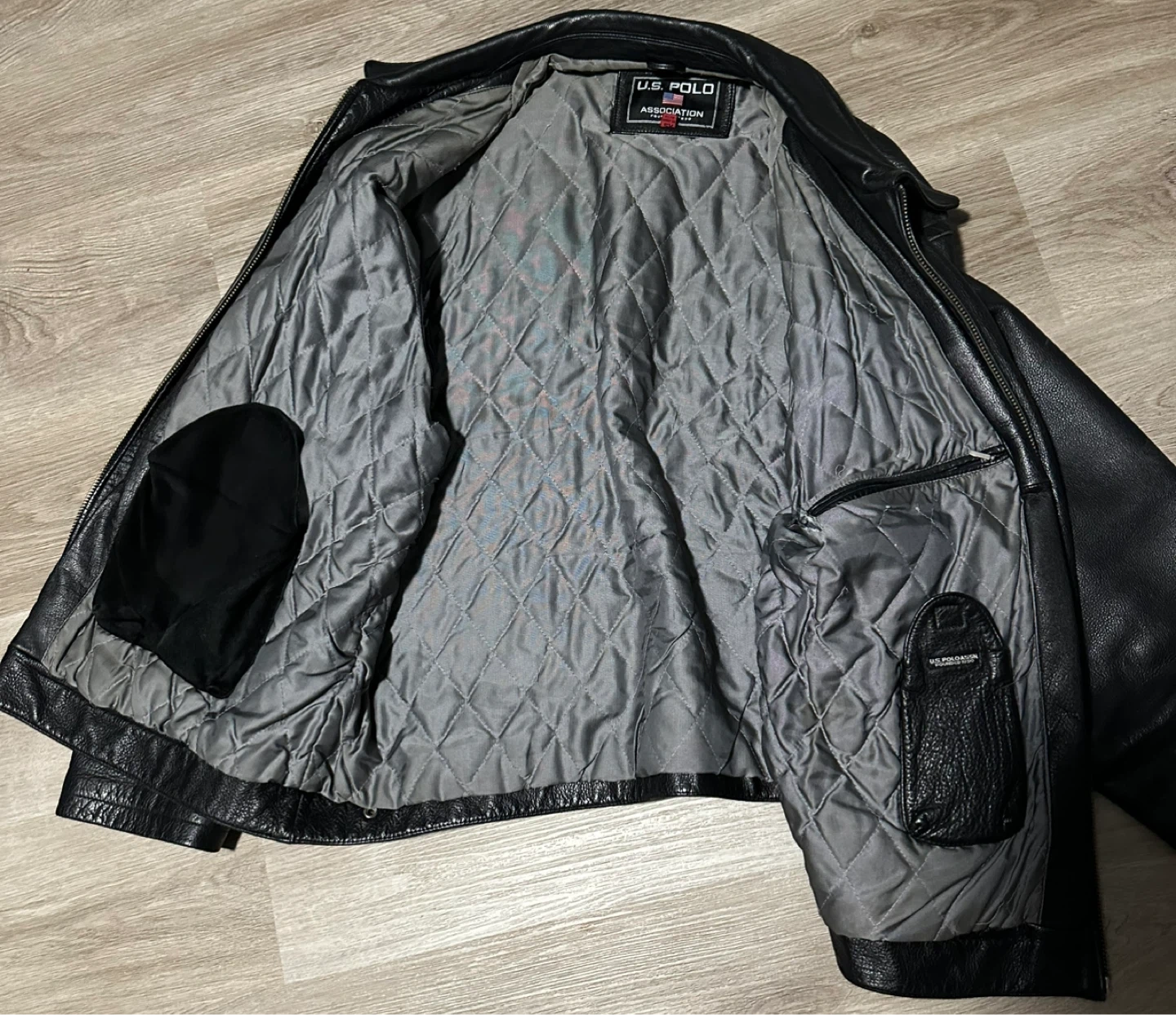 Classic black leather jacket from U.S. Polo Assn. in size 2X! The jacket features a full zip closure and a quilted lining for extra warmth. There's also a handy pocket on the inside, with a tear near inside pocket.